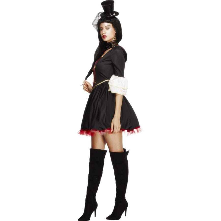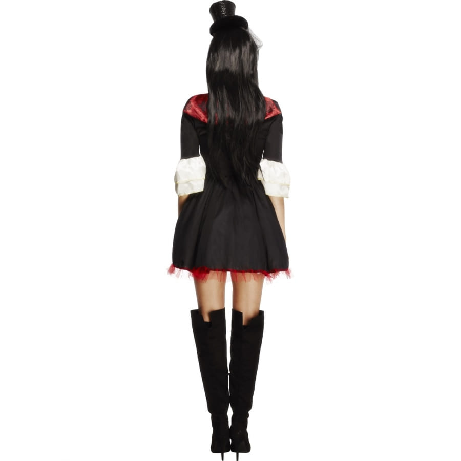 Vous allez incarnez un vampire pour Halloween avec ce déguisement, ou encore un démon. Ce déguisement est une robe manche longue , la robe est courte de couleur noir avec des volants marron au bas. Ainsi que d'un col noir. Vous pourrez aussi le porter pour un thème comme horreur.