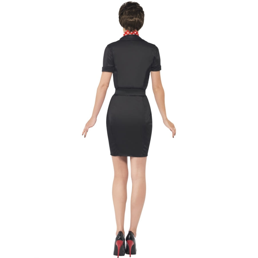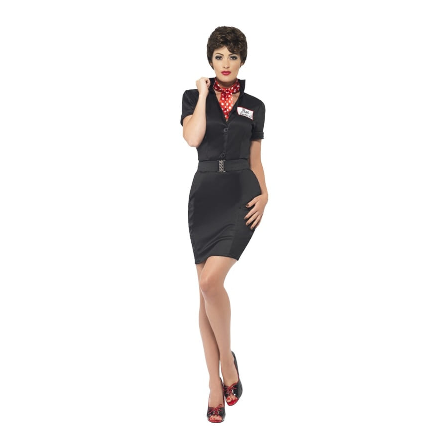 Une vraie meneuse, c'est ce que vous êtes. Vous ne vous souciez guère de ce que l'on peut dire à mi-voix à propos de vous : rebelle pour certains, tout simplement pleine d'assurance pour d'autres, vous êtes ce que vous êtes et vous l'assumez entièrement!! Voici une tenue qui vous irait à merveille : c'est un déguisement Rizzo (sous licence Grease) de la célèbre comédie musicale "Grease", actuellement disponible en taille 36/38 (taille S) et 40/42 (taille M). Il se constitue d'une robe noire cintrée et moulante, d'une ceinture et d'un joli foulard rouge à pois blancs. Portez-le avec des talons hauts de couleur rouge et noire, n'oubliez pas de mettre une couche bien affirmée de rouge et pas de soucis pour celles qui ne veulent pas avoir les cheveux courts, une perruque fera l’affaire. L'ensemble vous donnera l'air d’une vraie boss tout en restant très féminine à l'occasion de la fête de la musique. Il est conseillé de laver ce produit au nettoyage à sec uniquement.