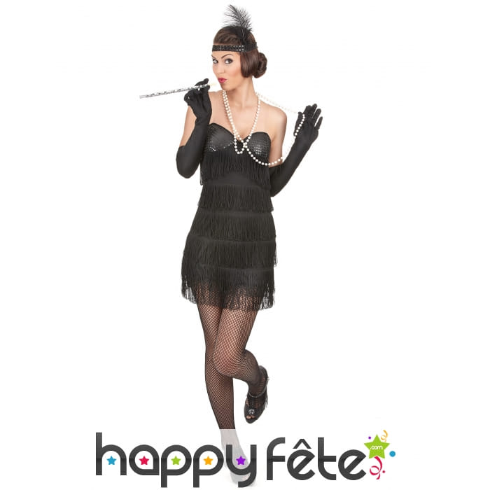 Revêtez la tenue d'une élégante danseuse de cabaret à travers ce déguisement robe charleston noire sexy à franges.