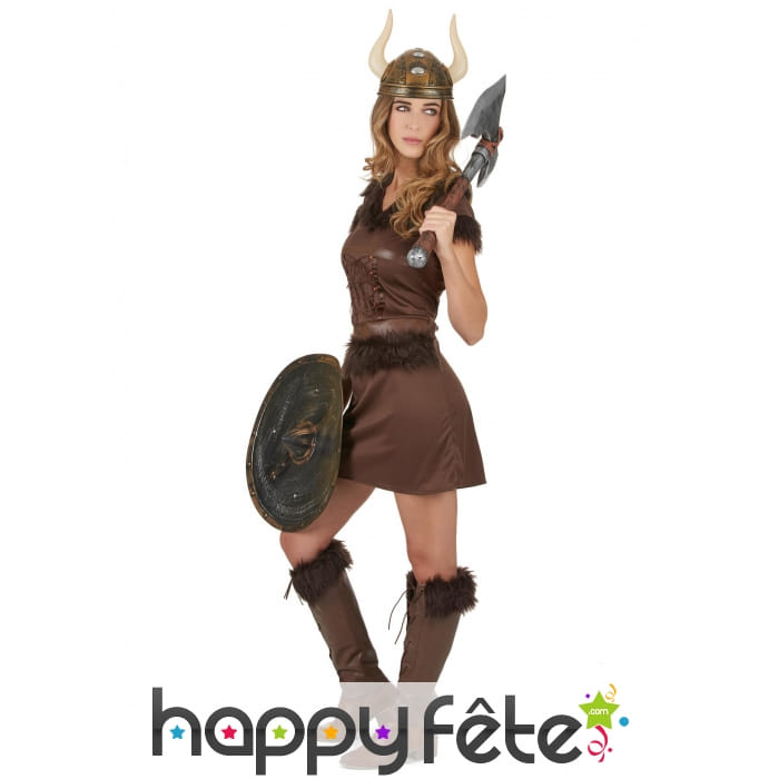 Ce déguisement robe courte de femme Viking vous transportera vers les paysages nordiques et magnifiques de l'époque des barbares.
