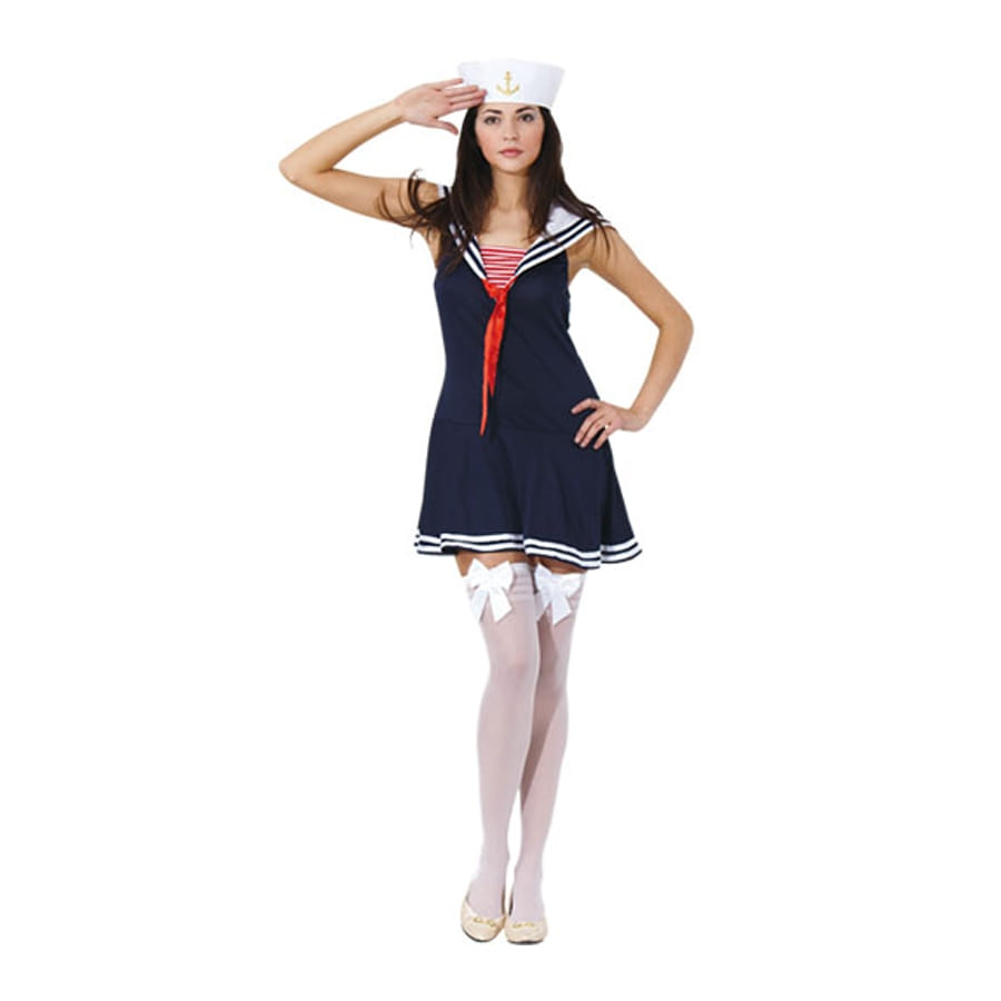 Vous cherchez un déguisement original et sexy sur le thème Mer ou Uniforme ? Nous avons ce qu'il vous faut. Ce déguisement robe courte de marin bleu est composé d'une robe courte bleu marine et d'un chapeau de marin blanc avec une ancre rouge sur le devant. La robe sans manches est moulante en haut et légèrement évasée en bas. Elle est dotée d'un large col blanc aux rayures bleues avec un ruban rouge noué aux extrémités. Ce qui est génial avec ce déguisement, c'est que vous pourrez ressortir cette jolie petite robe pendant vos vacances d'été à la plage, contrairement aux autres costumes qui devront attendre la prochaine fête déguisée.