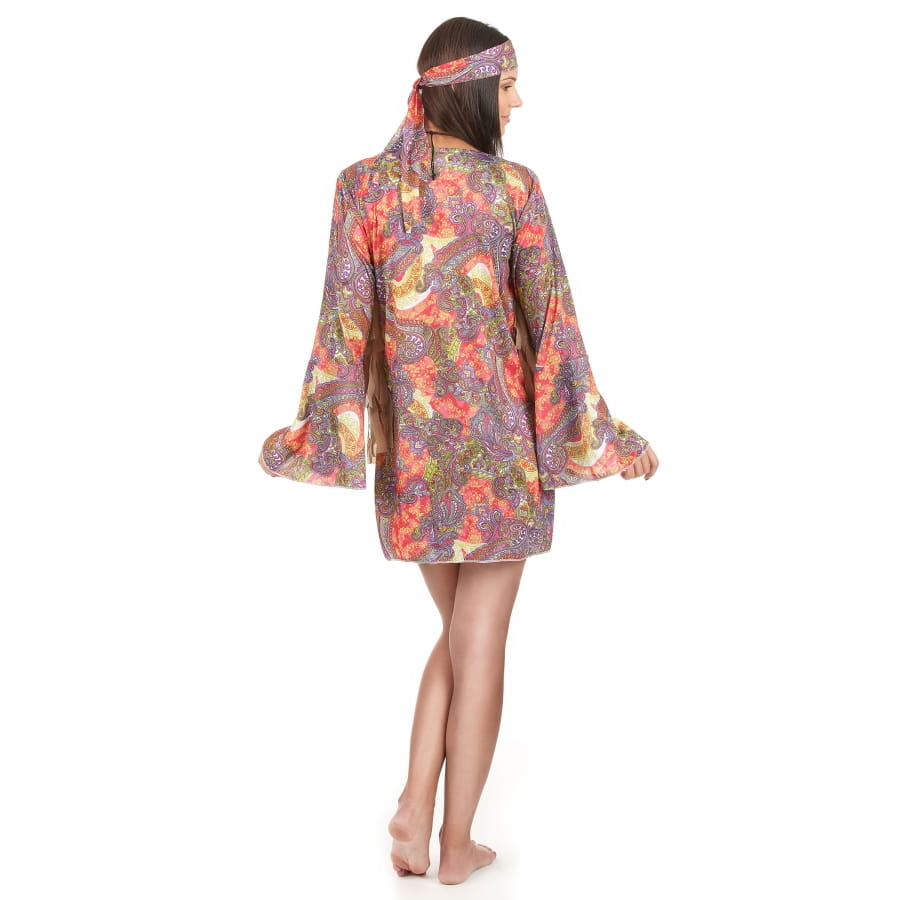 Ce déguisement robe courte petits motifs hippies est le costume parfait pour le carnaval ou les fêtes à thème.