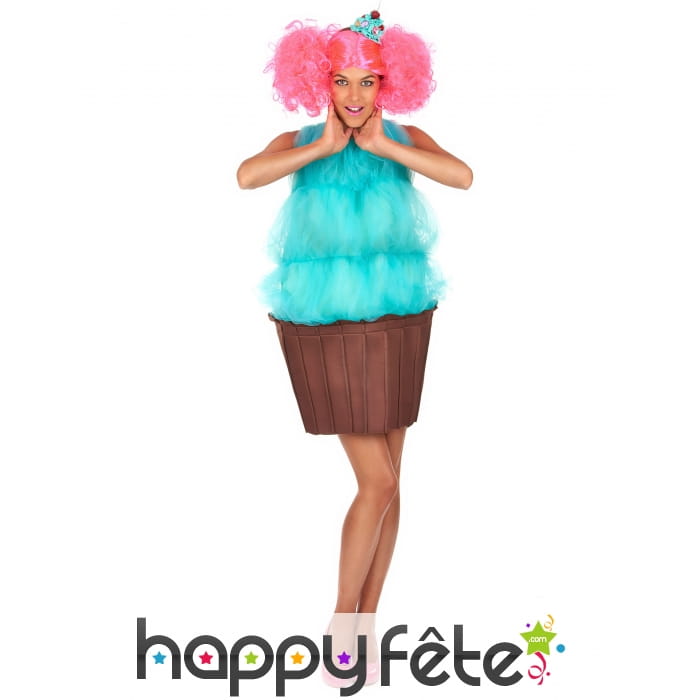 Surprenez vos invités lors d'une soirée sur le thème de l'humour, en revêtant ce déguisement robe cupcake turquoise, au goût absolument exquis.