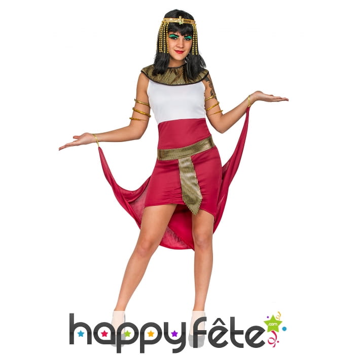 Lors d'une soirée sur le thème de l'Egypte, optez pour ce déguisement robe égyptien blanche et rouge.