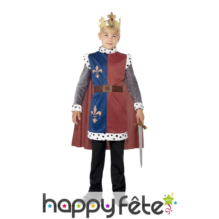 Vous serez surpris de voir comment votre petit bout d'chou peut être mignon dans ce déguisement de roi Arthur pour enfant. Avec une tunique de classe royale composée de la couleur bleue et marron avec des manches grises, et une sorte de fourrure blanche au niveau de l'encolure, des épaules et du bas des manches, vous aurez une cape de couleur marron qui est attachée à la tunique, ainsi qu'une couronne dorée. Quant aux tailles disponibles, ne vous inquiétez pas, tous les petits garçons de 10 à 12 ans, 7 à 9 ans et 4 à 6 ans peuvent bénéficier du costume.