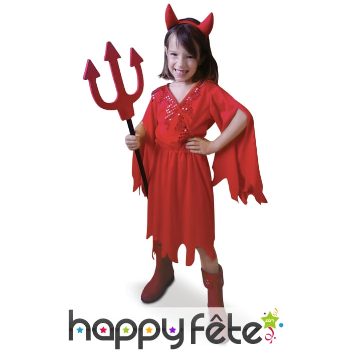 Votre fille risque fort de devenir l'attraction principale de la nuit d'Halloween, avec le déguisement rouge uni de petite diablesse.