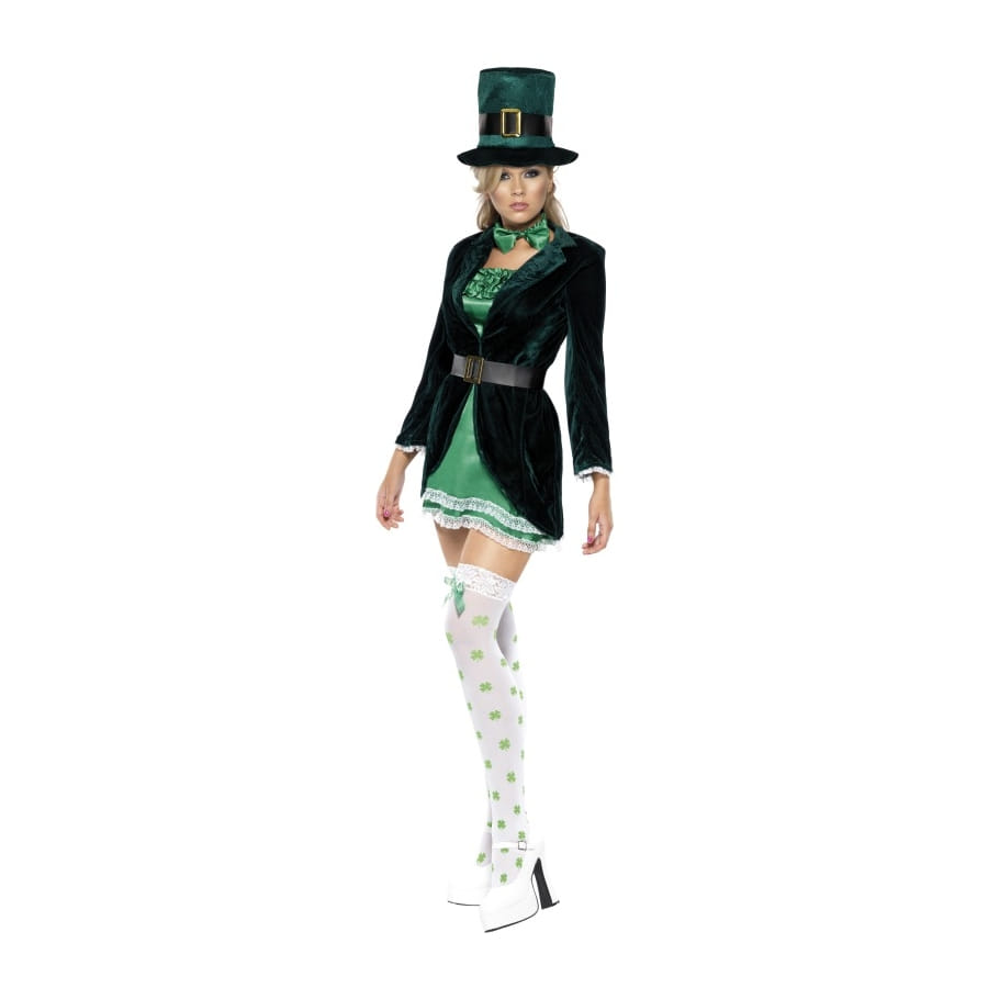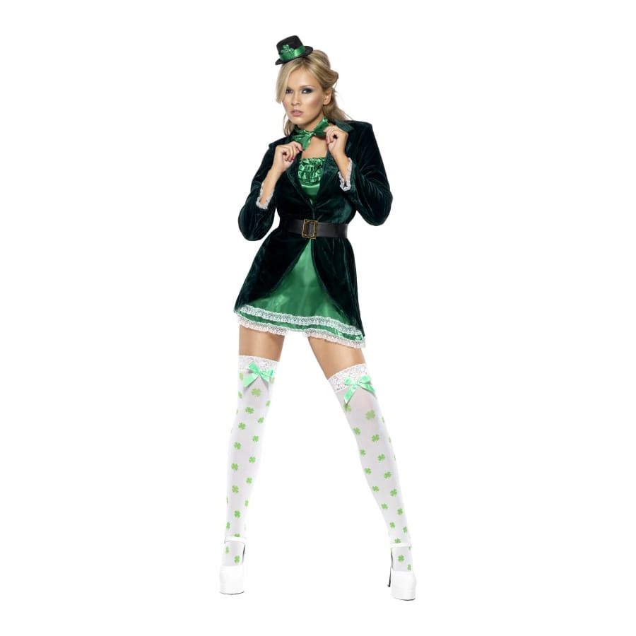 Pour la saint Patrick revêtez vous de cet ensemble, vous serez a la fois sexy et torride avec ce déguisement. Ce joli costume est composé d'un chapeau noir et vert, d'une robe verte avec de la dentelle au bas, d'un nœud papillon vert.