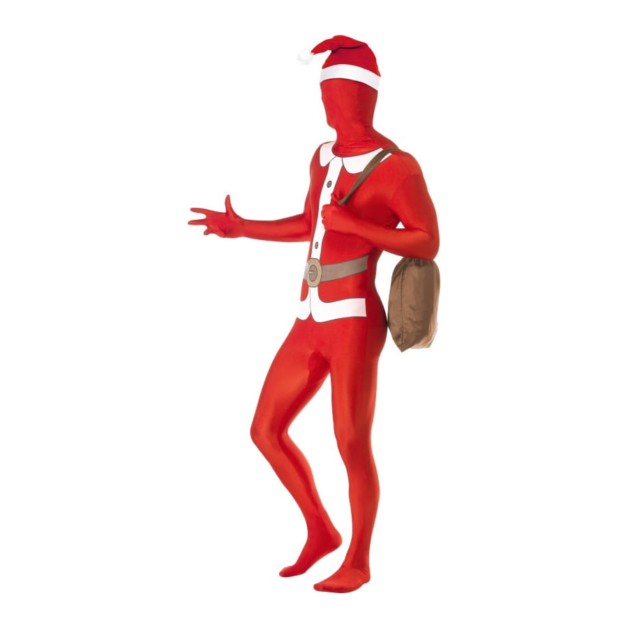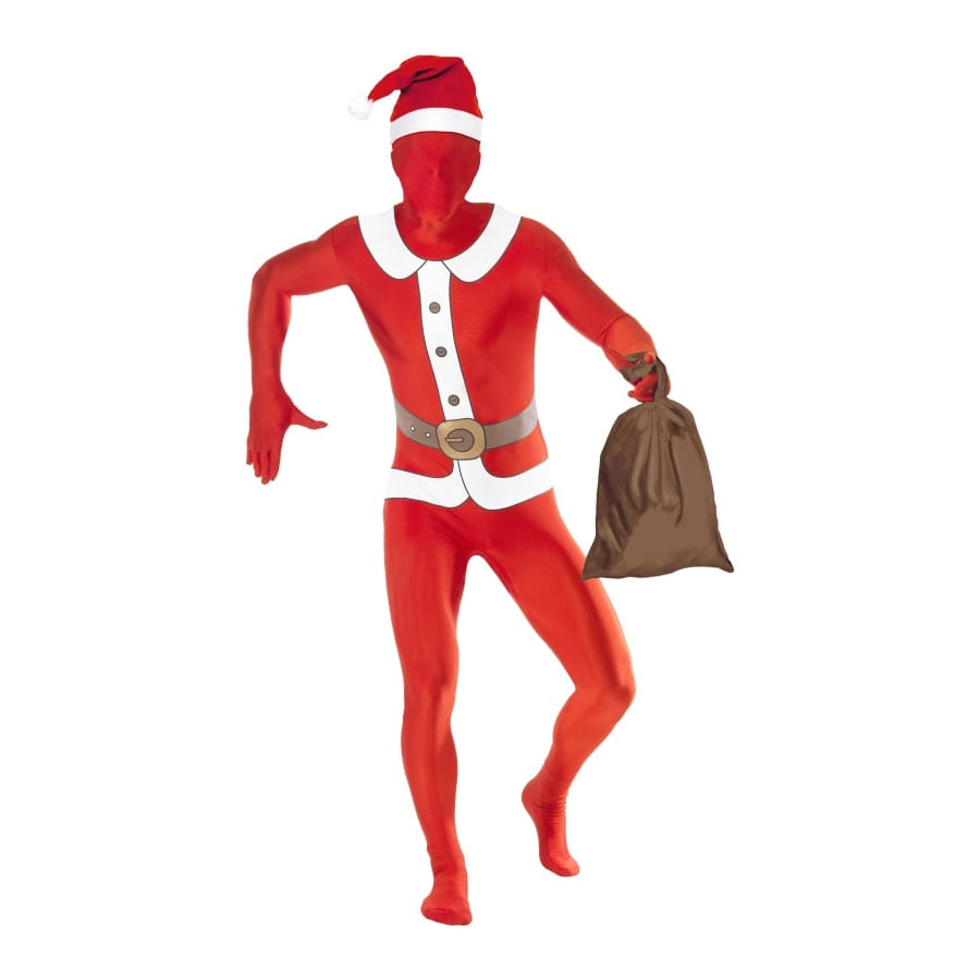 Une seconde peau du père noël vous pourrez le porter pour incarner le père noël ou alors pour la noël. Ce déguisement de taille L est comme une seconde peau, elle couvre complètement le corps de couleur rouge, blanc et la ceinture marron.