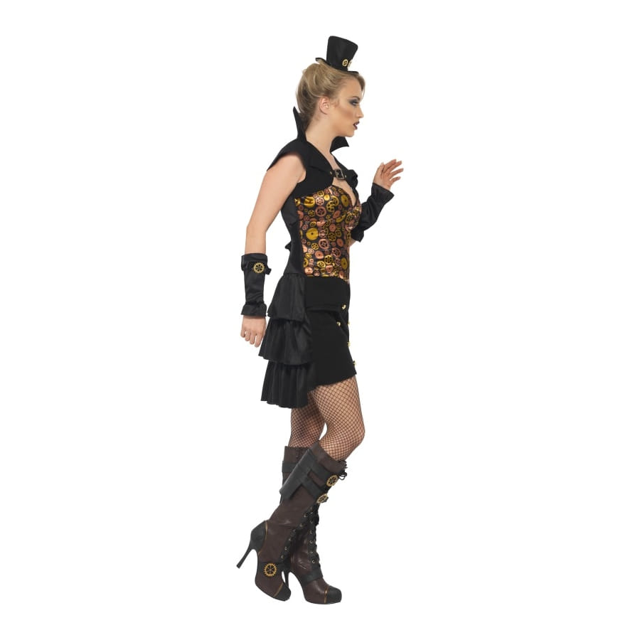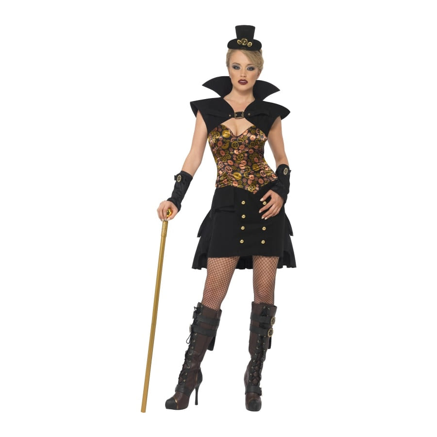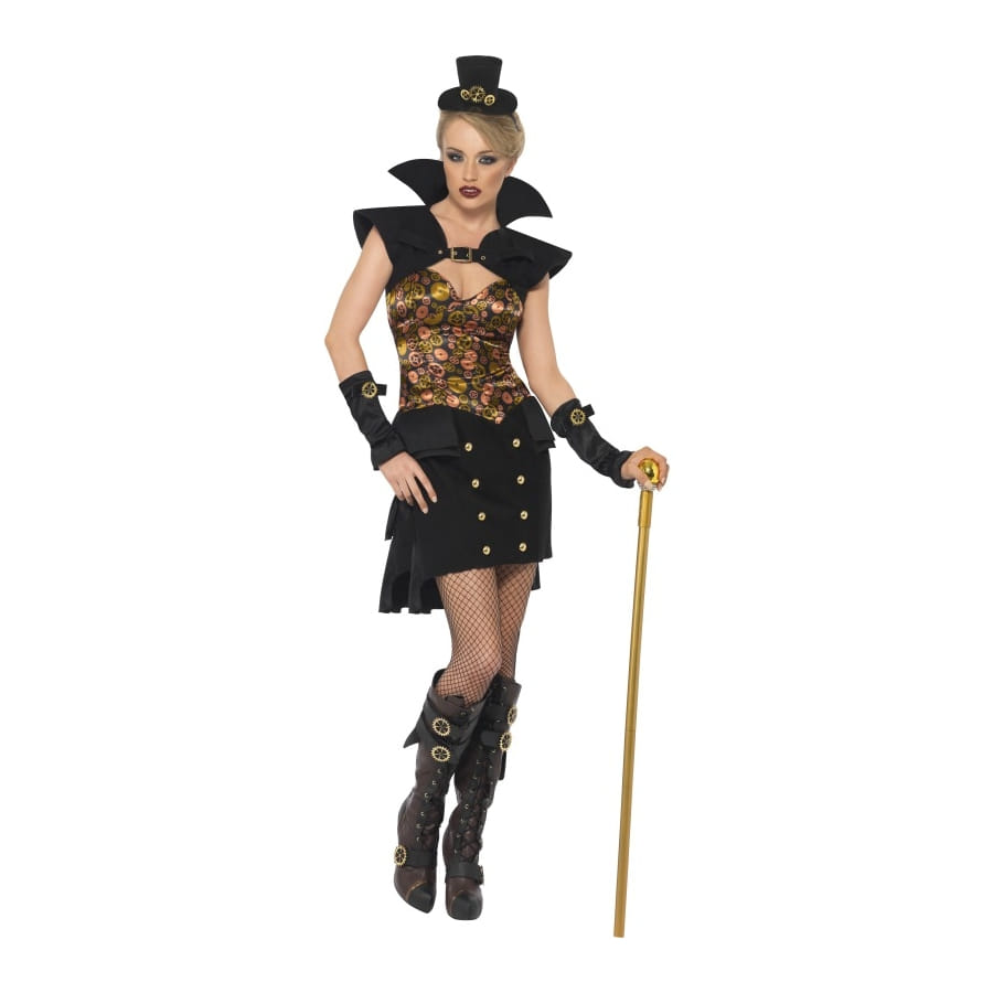 Avec ce costume de vampire sexy steam punk vous serez a la fois sexy et redoutable. Ce costume est parfait pour une fête sous le thème horreur ou punk. Cette robe bustier est de couleur dorée et noir, elle est courte, avec un col noir.