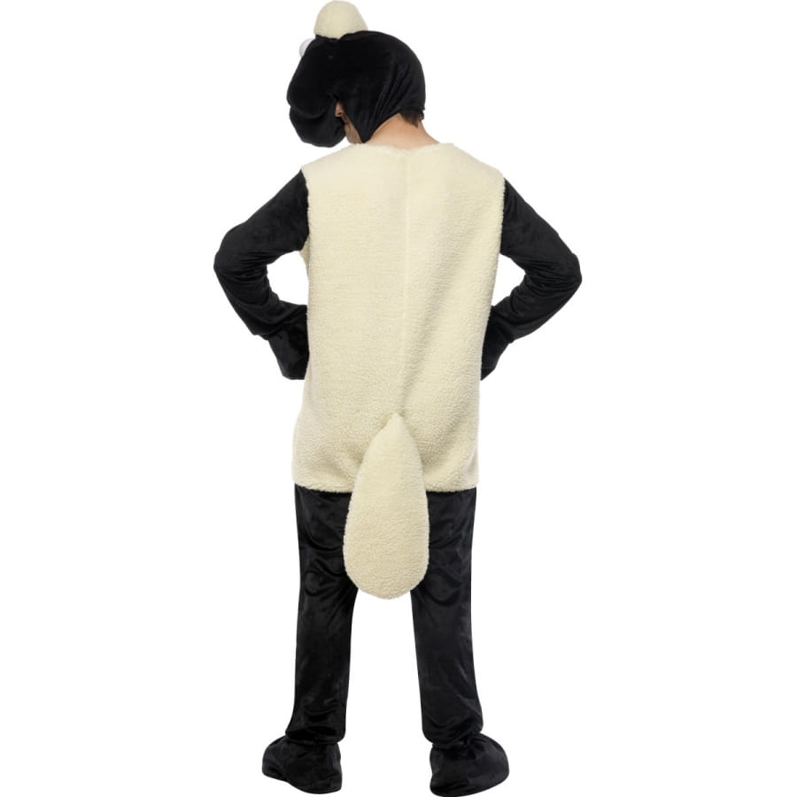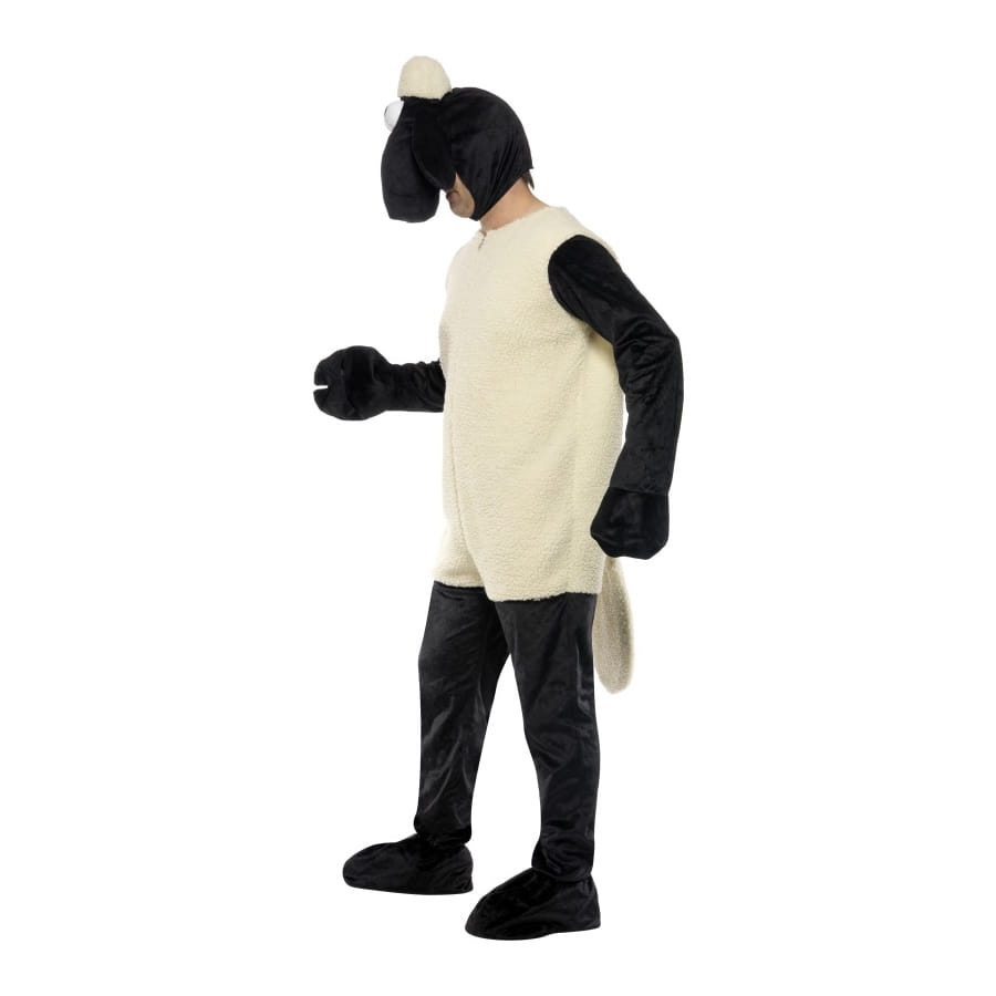 Déguisement de "Shaun le Mouton", pour homme ou mascotte, composé d'une combinaison et d'une tête de mouton de couleur blanche et noire. Ce déguisement est parfait pour une fête basée sur le thème des animaux ou des dessins animés, ou pour un anniversaire d'enfants.