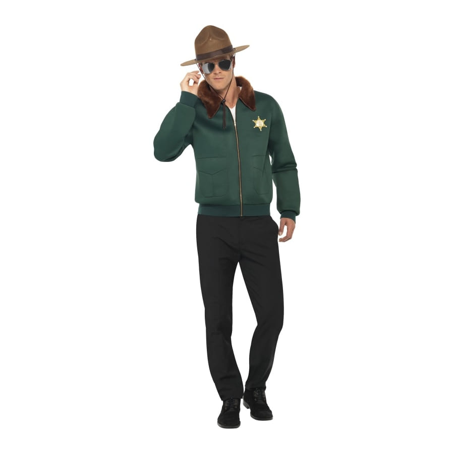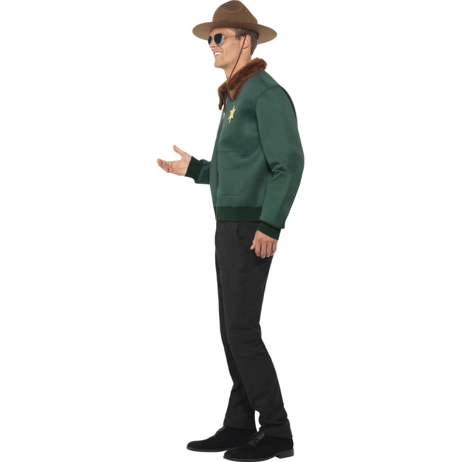 Un déguisement de shérif américain qui est composé d'une veste de couleur verte avec une fausse fourrure marron et d'un badge doré. Vous pourrez porter ce déguisement pour le carnaval ou encore pour une fête ayant pour thème uniforme.