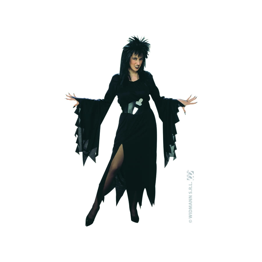 Vous serez cette fameuse sorcière grâce a ce déguisement Elvira. Vous pourrez la mettre pour Halloween, une fête déguisée, une fête sur le thème horreur ou encore pour le carnaval. Ce costume de taille XL, il est composé d'une longue robe avec fendu sur le coté et manche longue. Il est aussi composé d'une ceinture.