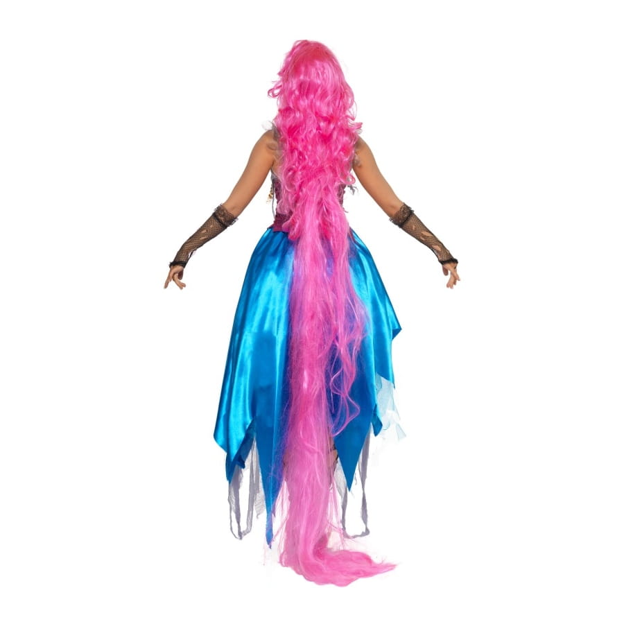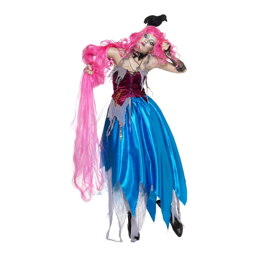 Un costume de sorcière pour le carnaval pourquoi ne pas optez pour celui ci, avec ces belles couleurs. Ce costume de sorcière est une longue robe bustier qui est de couleur bordeaux, et le bas de la robe de couleur bleu.