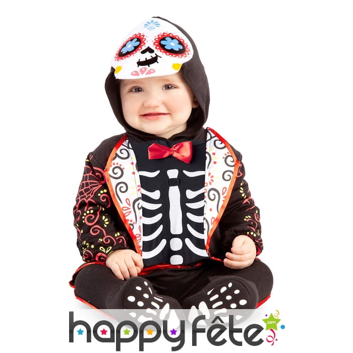 Profitez du dia de los muertos mexicain pour habiller votre bout de chou du déguisement squelette jour des morts pour bébé.