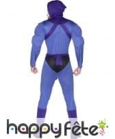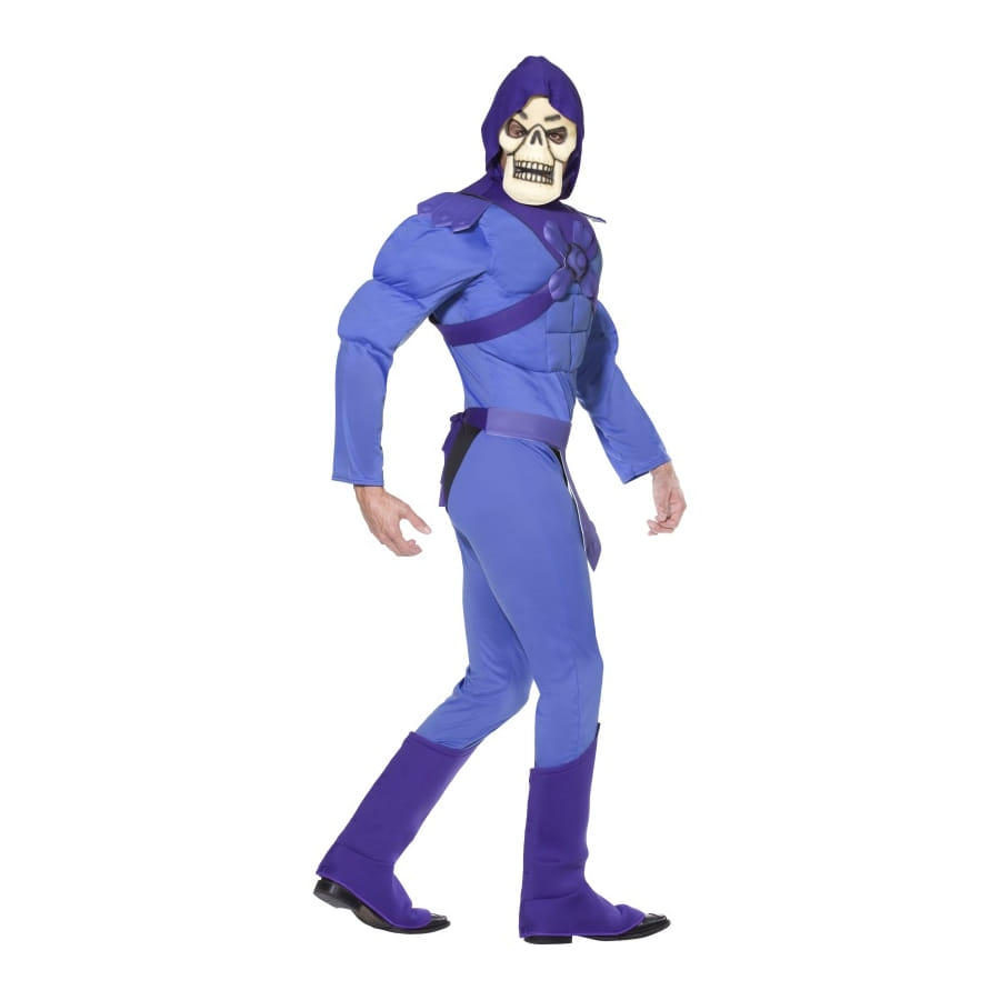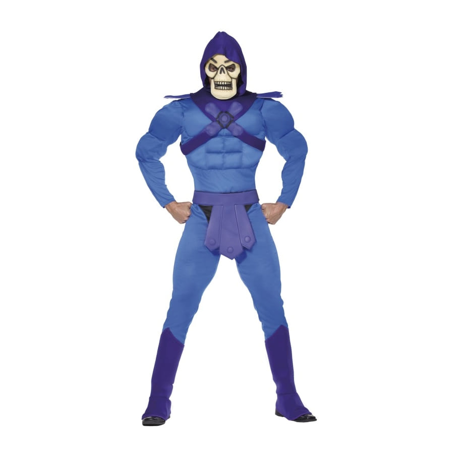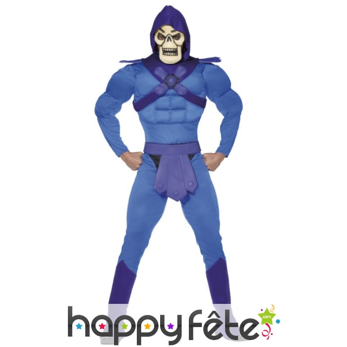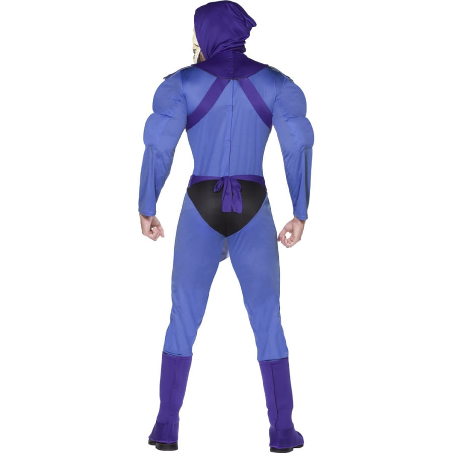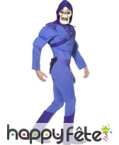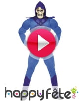 Déguisement de Skeletor de couleur bleue, pour homme, composé d'une combinaison, d'une ceinture, de couvre-bottes et d'un masque de squelette. Ce déguisement est disponible en taille S, M ou L. Si vous vous rappelez de la bande dessinée "He-Man", vous vous rappellerez également de Skeletor, son ennemi juré!