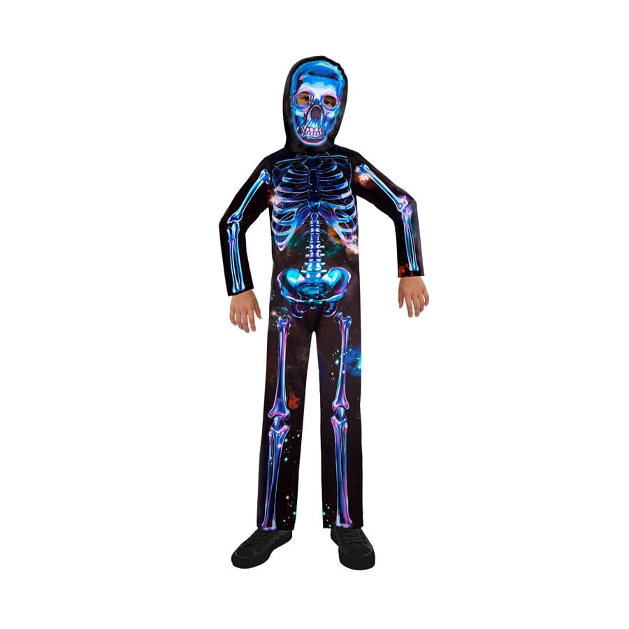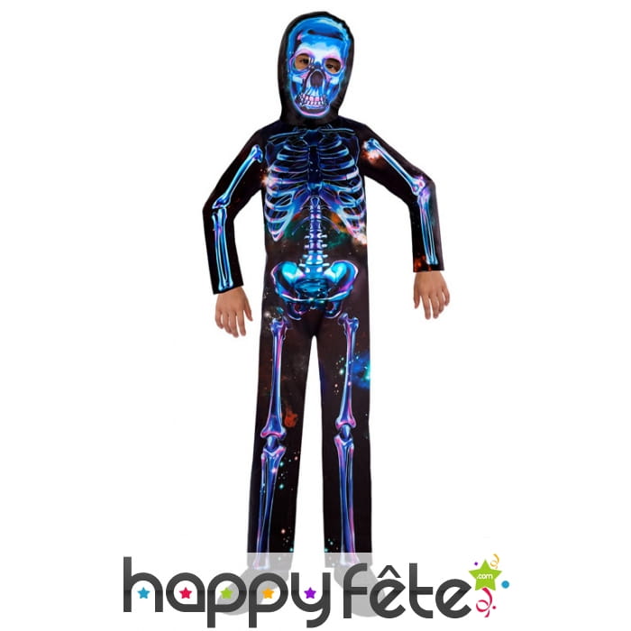 Sortez des clichés habituels pour la prochaine soirée d'Halloween et offrez à votre garçon ou fille le déguisement squelette néon recyclé pour enfant.