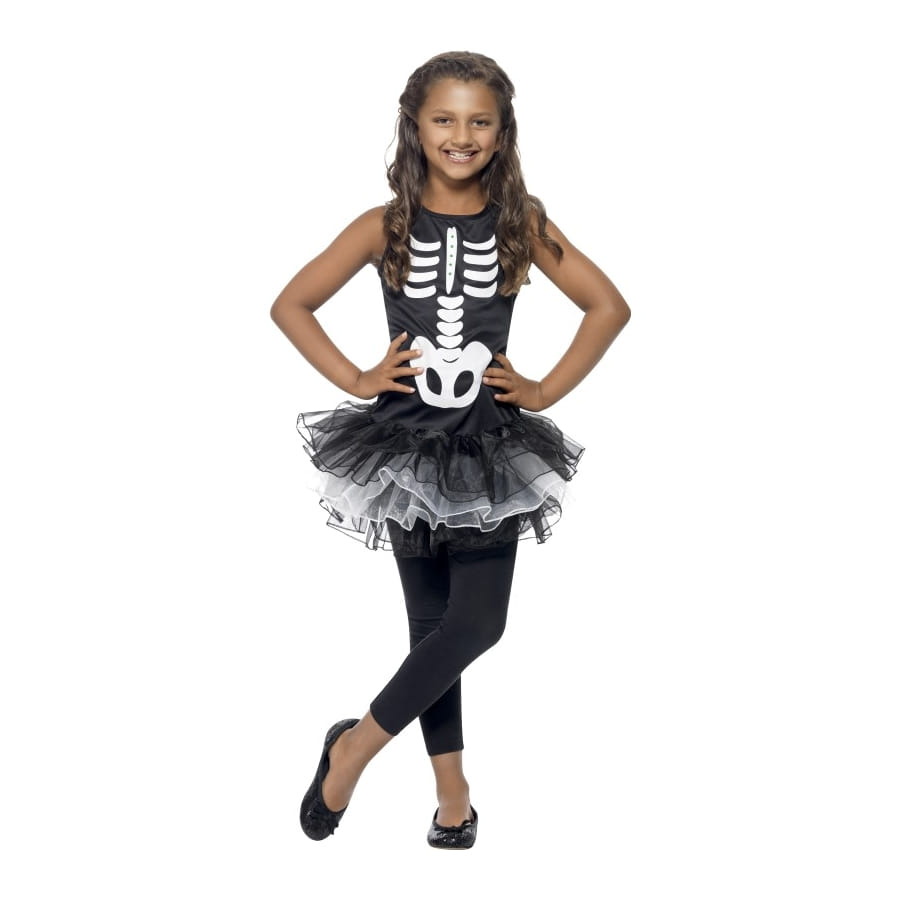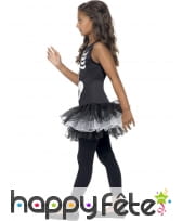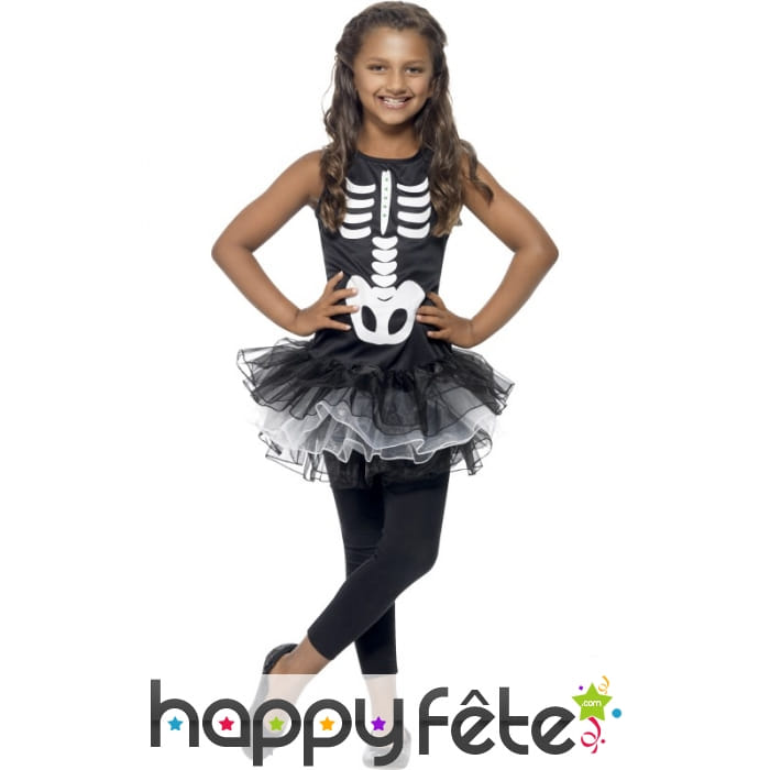 Il n'est pas difficile de trouver un déguisement original, la preuve, en voici un. C'est une tenue pour petite fille, elle pourra très bien la mettre en guise de déguisement ou même pendant ses cours de ballet. C'est une robe squelette en tutu. Elle est toute en noir, avec le dessin d'un squelette imprimé dessus en blanc. Puis en bas, elle est attachée à un joli tutu en noir et blanc. Vous pourriez ajouter un justaucorps noir et des petites ballerines, et votre petite sera la plus belle de toute. Vous avez ici un de ces déguisements qui mettra bien en valeur la grâce de votre petite bambina. Proposée en taille S(4-6 ans), M(7-9 ans) et L(10-12 ans).