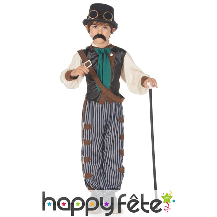 Pour votre prochaine soirée costumée, transformez votre garçon en un personnage futuriste des plus élégants, grâce au déguisement steampunk pour enfant, pantalon ligné.