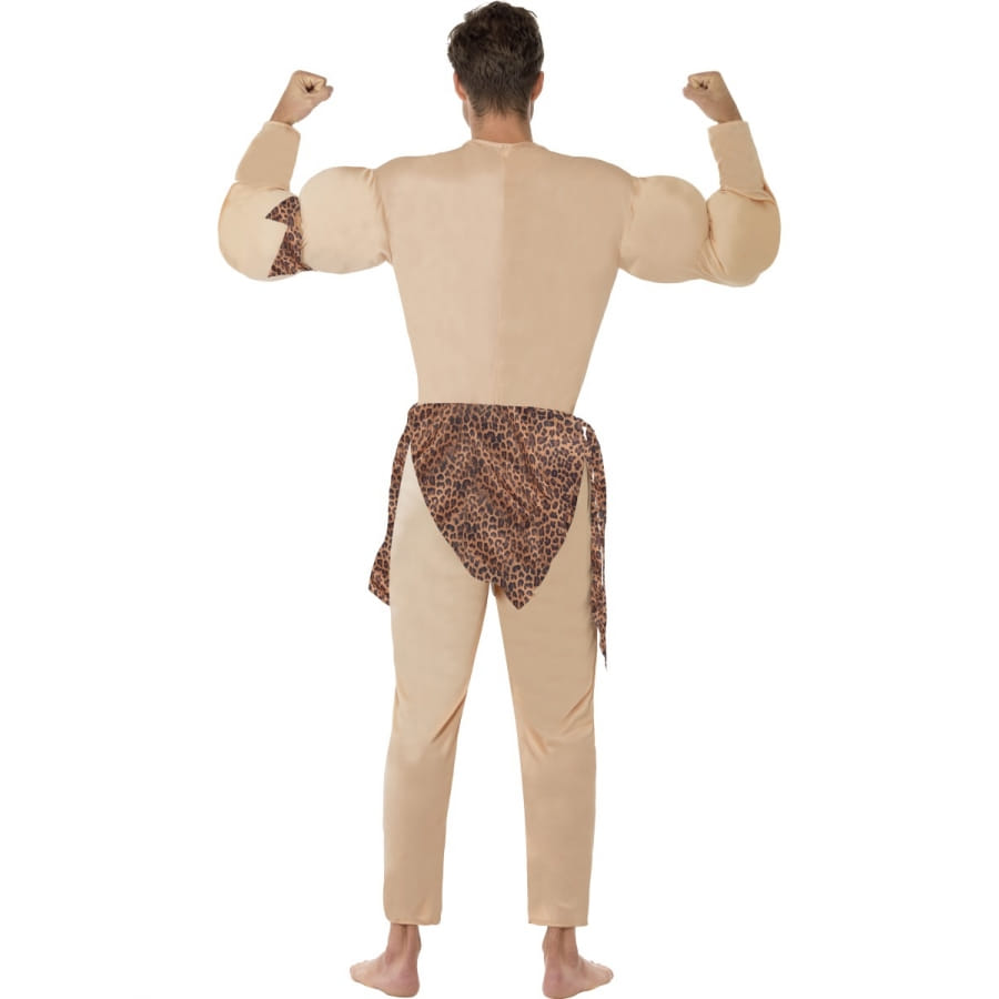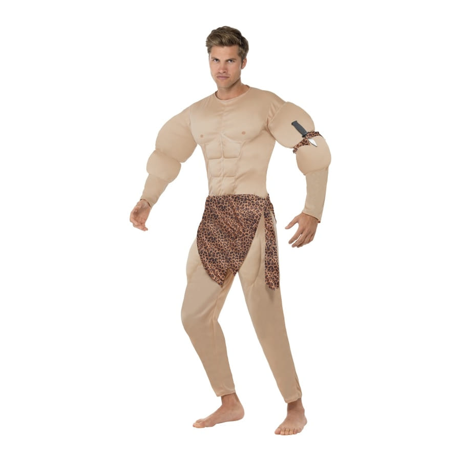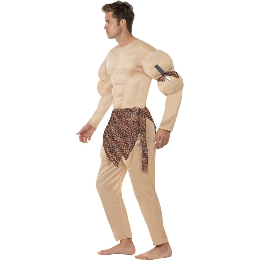 Déguisement de Tarzan, pour homme, composé d'une combinaison avec faux muscles et pagne léopard, bracelet assorti pour le bras et poignard. Ce déguisement humoristique sera idéal pour un enterrement de vie de célibataire.