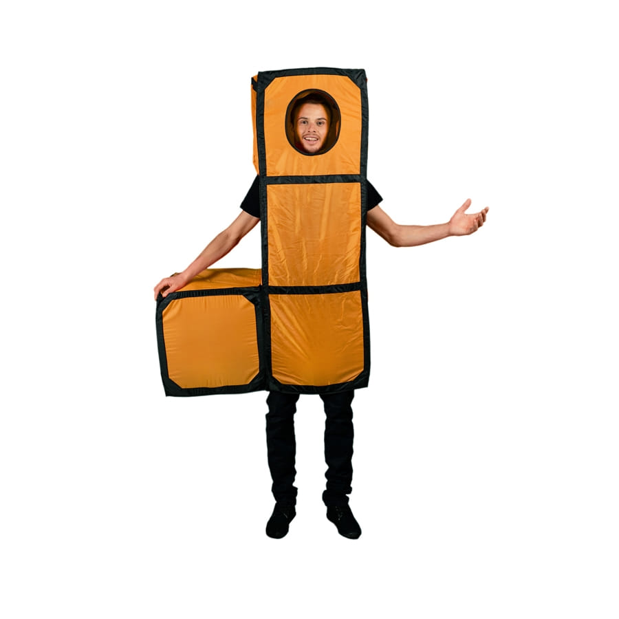 L'incontournable jeu vidéo Tetris vous passionne ? Optez pour ce déguisement Tetris en forme de L, Morphsuit ! Celui-ci est sous licence officielle Jeux vidéo, fait pour adultes. Il se compose d'une combinaison insolite ultra réaliste formant la lettre L, de couleur orange, bien entendu. Vous pourrez ainsi vous métamorphoser en brique Tétris pour animer votre soirée déguisée. Et si vous êtes célibataire et à la recherche d'un(e) conjoint(e), vous aurez peut-être la chance de vous emboîter avec une belle demoiselle (ou un jeune homme) qui est aussi dans un costume Tetris, qui sait ?!