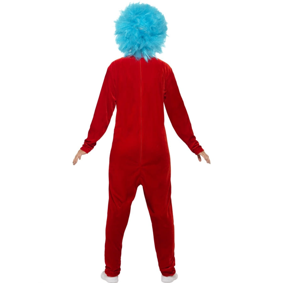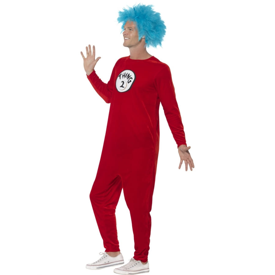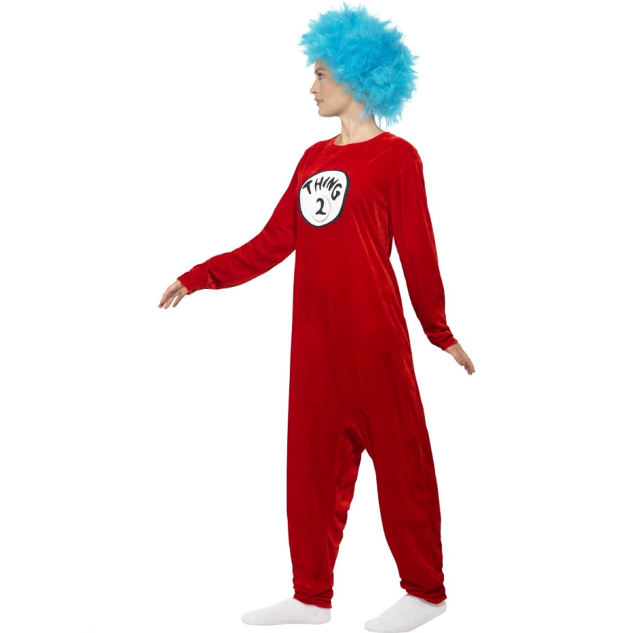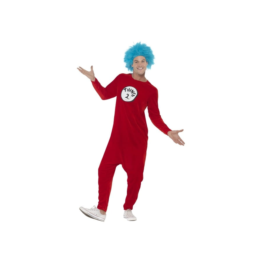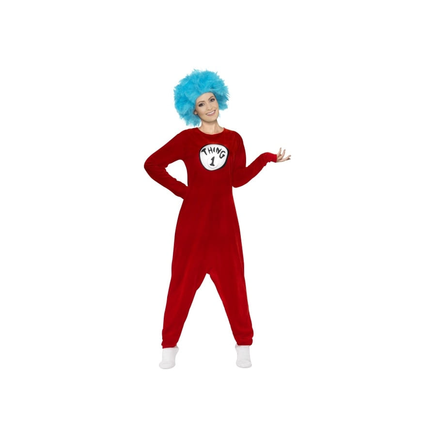 Vous voulez avoir un déguisement auquel personne n'aurait pensé ? Sur Happyfete, il y en a plein et parmi eux il y a ce déguisement Thing 1 or Thing 2 pour femme, idéal surtout si vous allez à une fête à thème conte de fée ou dessin animé et BD. La combinaison qui compose le déguisement est très facile à enfiler. Elle est entièrement de couleur rouge. Une perruque à cheveux ébouriffés de couleur bleu la complète ainsi que deux badges Thing 1 ou Thing 2, à épingler n'importe où sur la combinaison. Il est destiné aux femmes ainsi qu'aux hommes et est disponible en plusieurs tailles selon ce que nous avons en stock.