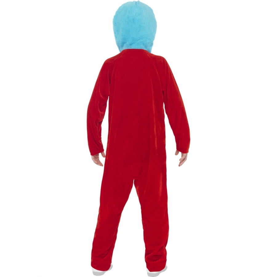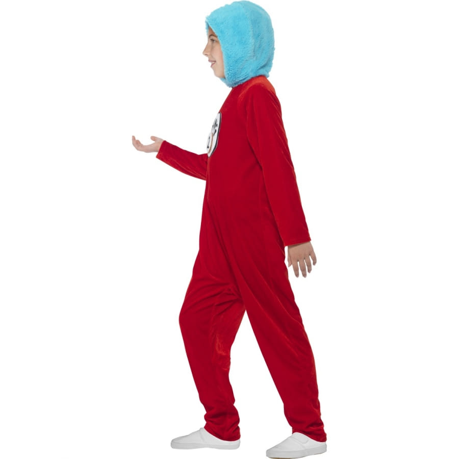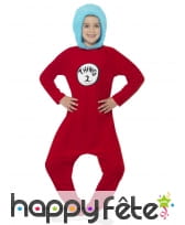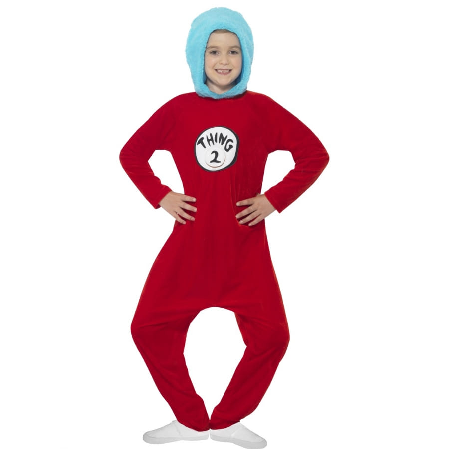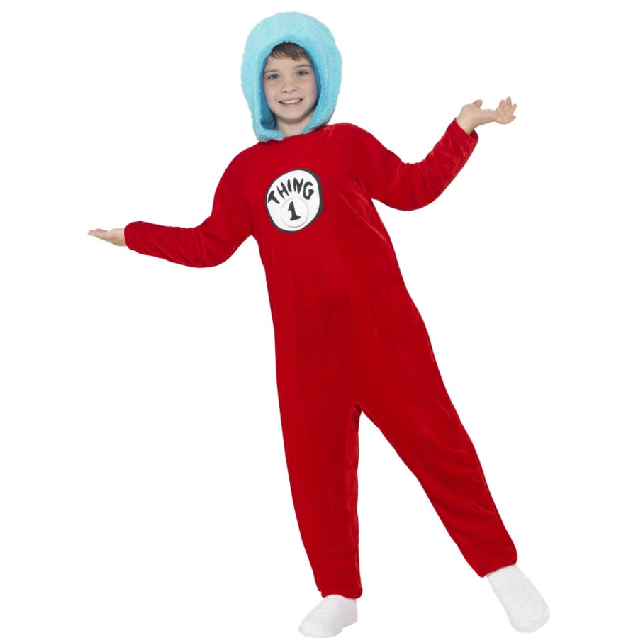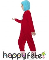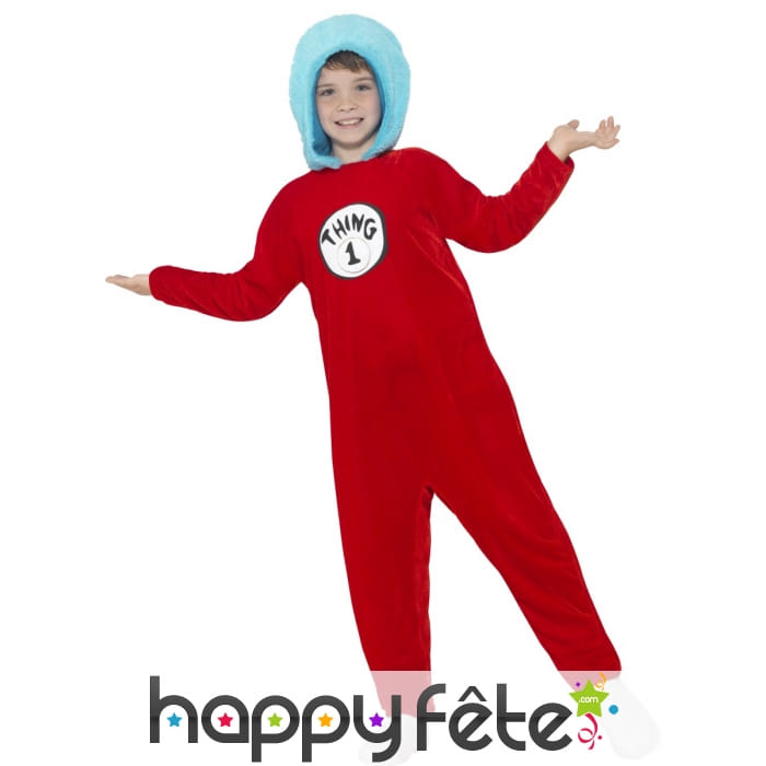 Partez à l'aventure dans la peau de Thing 1 et Thing 2. Ces personnages inspirés du livre The Cat in the Hat invitent les 4 à 9 ans à entrer dans leurs univers. Le déguisement Thing 1 or Thing 2 pour enfant fille ou garçon est composé d'une combinaison de couleur rouge, avec des manches longues. Une capuche de couleur bleu ciel y a été intégrée en guise d'imitation de la coiffure des personnages, qui en principe ont des cheveux bleu afro. Deux badges vous seront fournis avec le déguisement. Ils sont à coller au niveau de la poitrine et permettront à l'enfant d'incarner tantôt Thing 1, tantôt Thing 2 en une même soirée.
