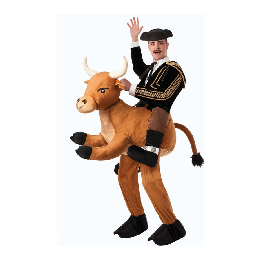 Soyez le roi de l'arène avec ce sublime et humoristique déguisement toréador à dos de taureau ! Cet ensemble vous mettra dans la peau d'un vrai torero sur son taureau. Il est dédié à la gente masculine. Il est constitué par un taureau rembourré de couleur marron à cornes blanches ainsi que de jambes de cavalier attachées pour incruster ses pieds. Vous pourrez choisir une veste noire pour le haut, et un chapeau de toréador et une petite moustache, à retrouver parmi nos accessoires. Pour une fête sur le thème de l'Espagne, Animaux, Humour ou pour tout évènement déguisé, choisissez ce costume de toréador hors du commun ! Il vous plongera dans une véritable ambiance de la corrida. Vous serez en mesure de ravir les grands et d'enchanter les petits. Olé !