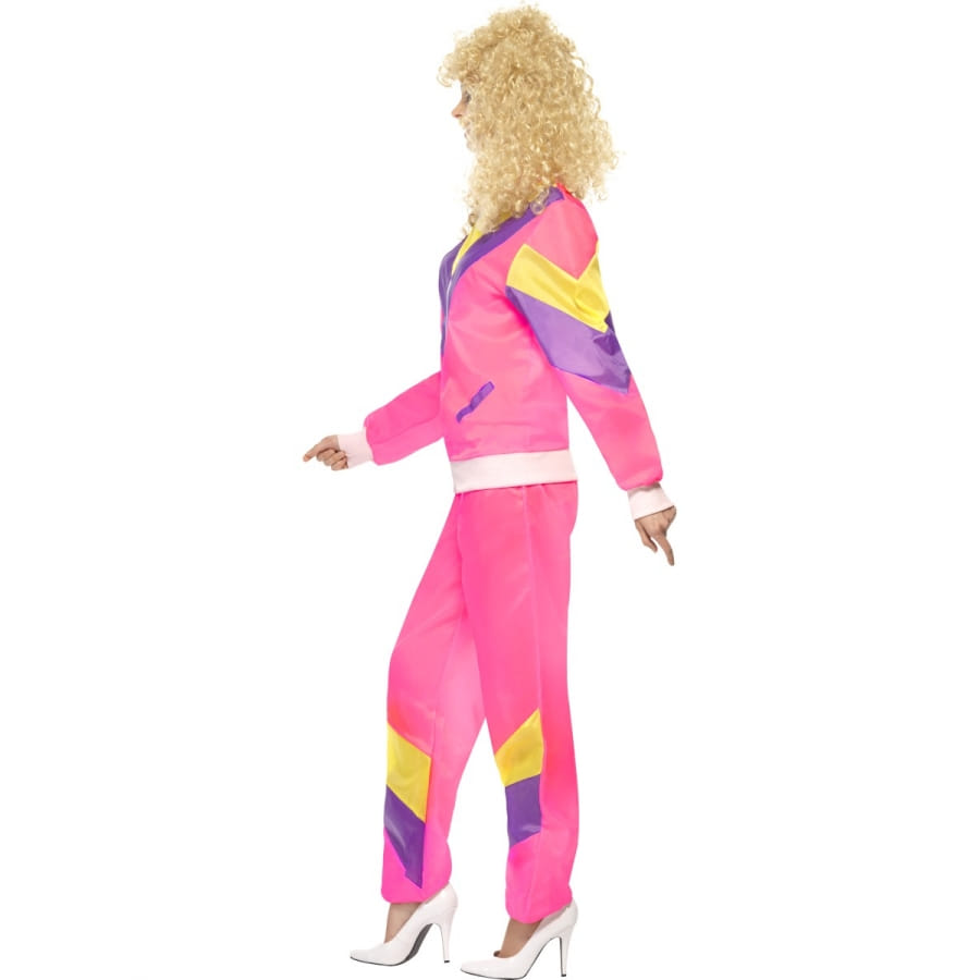 Déguisement de training des années 80, pour femme, composé d'une veste et d'un pantalon disponibles tous deux en taille S, M ou L. Ces deux accessoires sont ornés de bandes jaunes et violettes. Cette tenue a un côté funky qui égayera votre style et, par la même occasion, votre soirée.