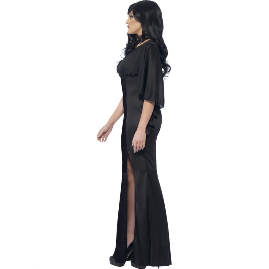 Voici un déguisement de vampire, destiné spécialement pour les femmes de grande taille, à porter pour Halloween. C'est une longue robe décolletée, à manches chauve-souris, avec une fente sur le côté. Elle est entièrement de couleur noire, disponible pour les tailles suivantes : L/XL/XXL/XXXL. La soirée d'Halloween est imminente ! Les petits et les grands vont tous se déguiser en différents personnages malveillants pour terrifier les autres. Et avec nous, tout le monde aura la chance d'arborer un magnifique costume. Il ne vous reste plus qu'à mettre un maquillage assez sombre, et à porter de fausses dents de vampire, à retrouver dans notre section accessoires.