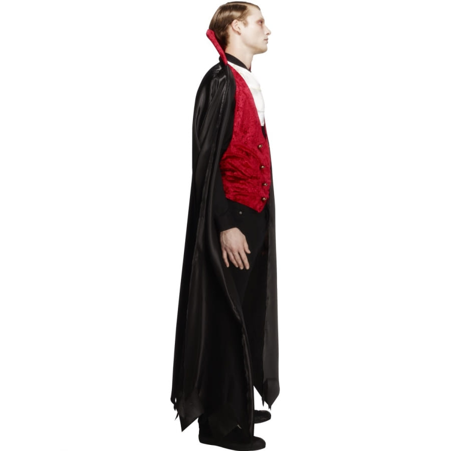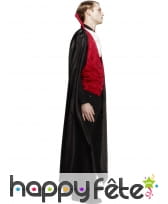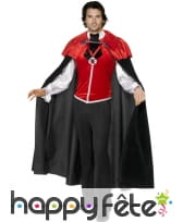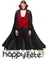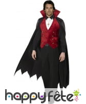 Ce costume de vampire est parfait pour une soirée halloween , vous serez un le plus incroyable des vampires pour une fête sur le thème horreur. Il est composé d'un veston, d'une cape noir avec col rouge ainsi que d'une cravate.