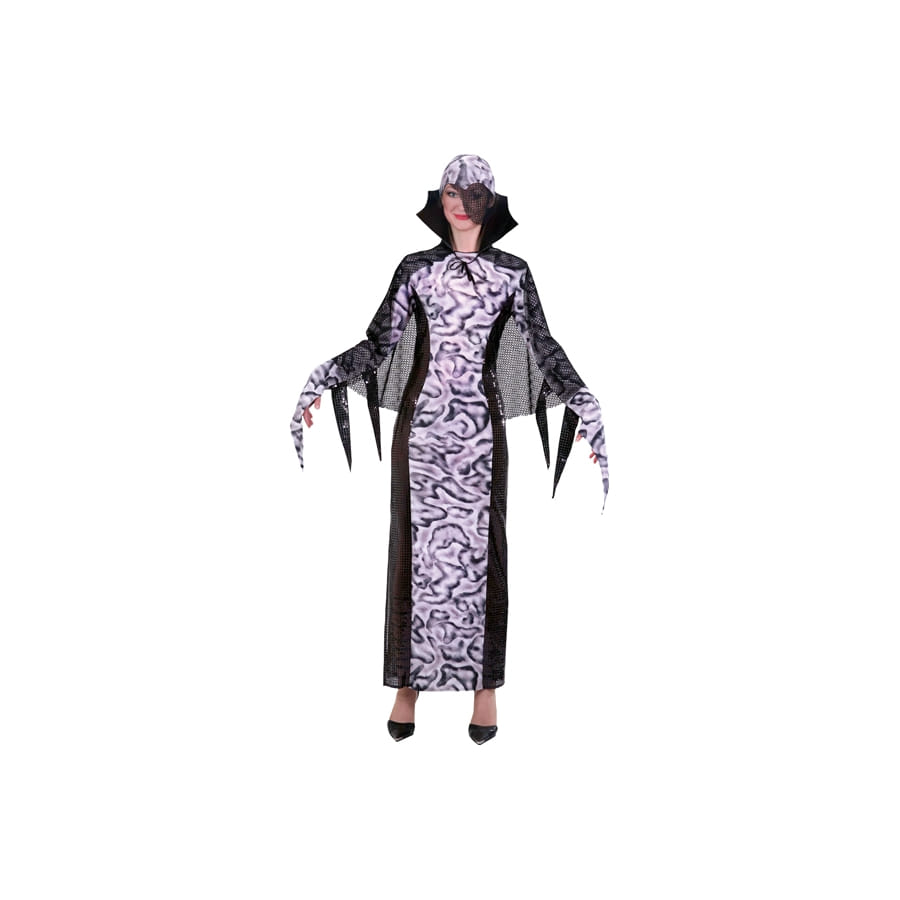 Les vampires existent-ils réellement ? En tout cas, avec ce déguisement original pour femme de taille 38/42, vous donnerez l'impression d’incarner réellement la compagne du compte Dracula. De couleur violet et noir, cette tenue tiendra ses promesses. Elle est composée d'une robe, d'un long col, d'une cape (ressemblant aux ailes d'une chauve souris), et d'une coiffe. Maquillez-vous en conséquence et semez la terreur dans la fête.