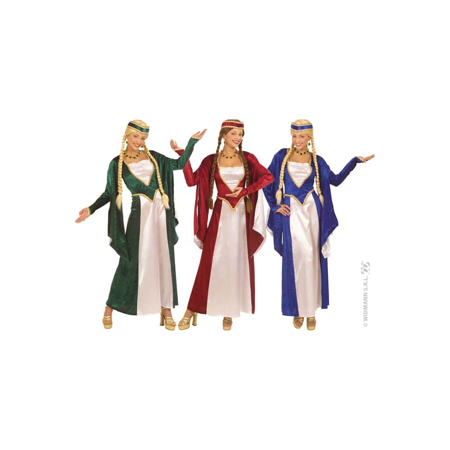 Avec ce déguisement de Renaissance pour femme, vous entrez dans une humeur romantique. Le costume est composé d'une longue robe blanche bi-matière en velours et satin et d'une coiffe. Le déguisement est décliné en trois couleurs (qu'il n'est pas possible de choisir, vous recevez l'un des articles présenté. En rouge, bleu ou vert)