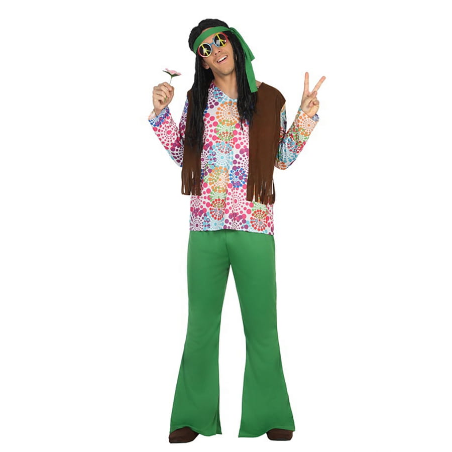 Lors d'une soirée costumée ou d'un carnaval, replongez dans les années yéyé en enfilant ce déguisement vert coloré de hippie pour homme.