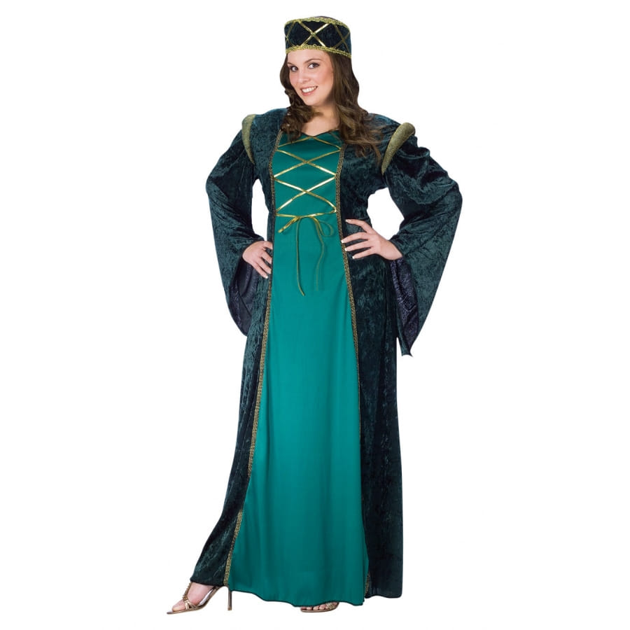 Le déguisement vert de reine médiévale pour femme est un costume de 2 pièces.