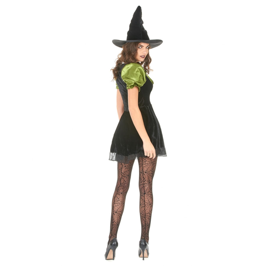 Devenez la plus jolie des sorcières le temps de la fête des morts. Pour ce faire, nous avons l'article qu'il vous faut. Nous vous proposons le déguisement vert et noir court de sorcière, qui reste disponible sur notre site. Il se présente sous la forme d'une minirobe de couleur noire, avec un haut vert par devant. Le tissu qui compose la tenue correspond à une imitation velours, très doux au toucher. Un laçage vert donne encore plus de style à la robe et permet en même temps de l'ajuster à votre taille. Un chapeau de sorcière à calotte allongée et pointue complète l'ensemble, ainsi qu'un tour de cou.
