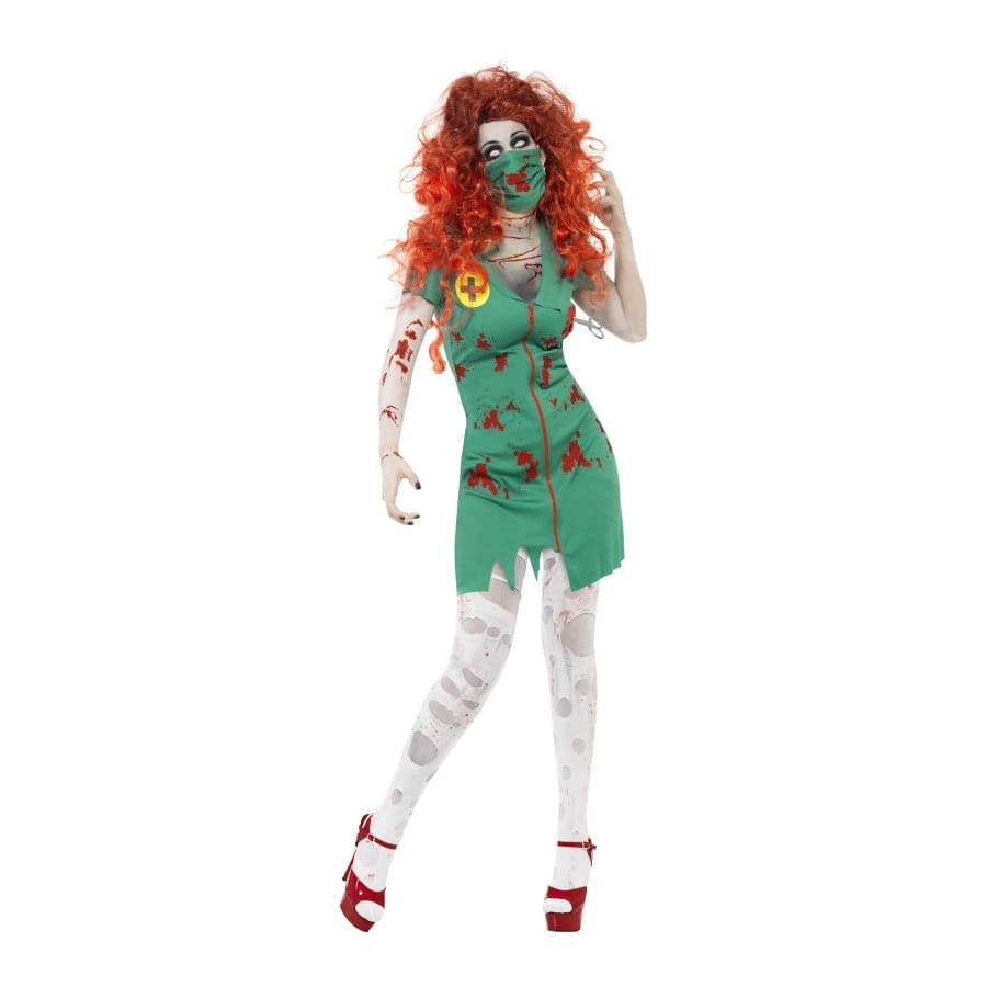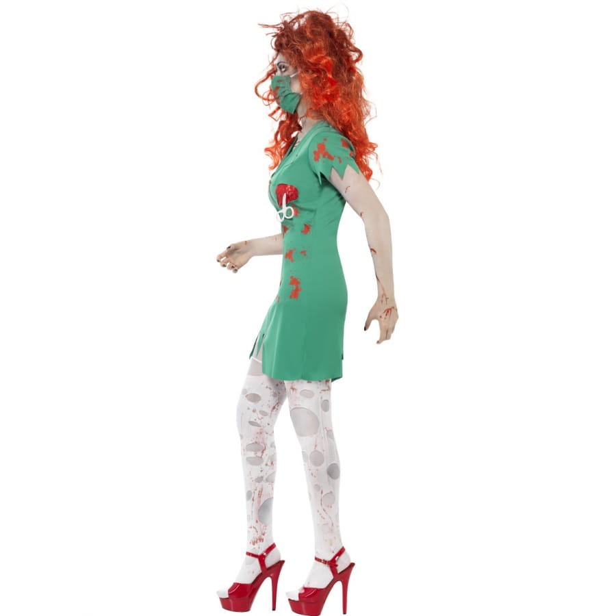 Un costume d'infirmière zombie qui est composé d'une robe verte avec du sang dessus ainsi qu'un masque vert avec du sang dessus. Ce costume vous pourrez le porter pour le carnaval ou encore pour une soirée sur le thème horreur ou même Halloween.