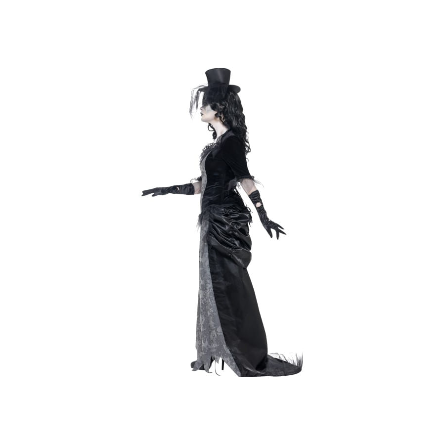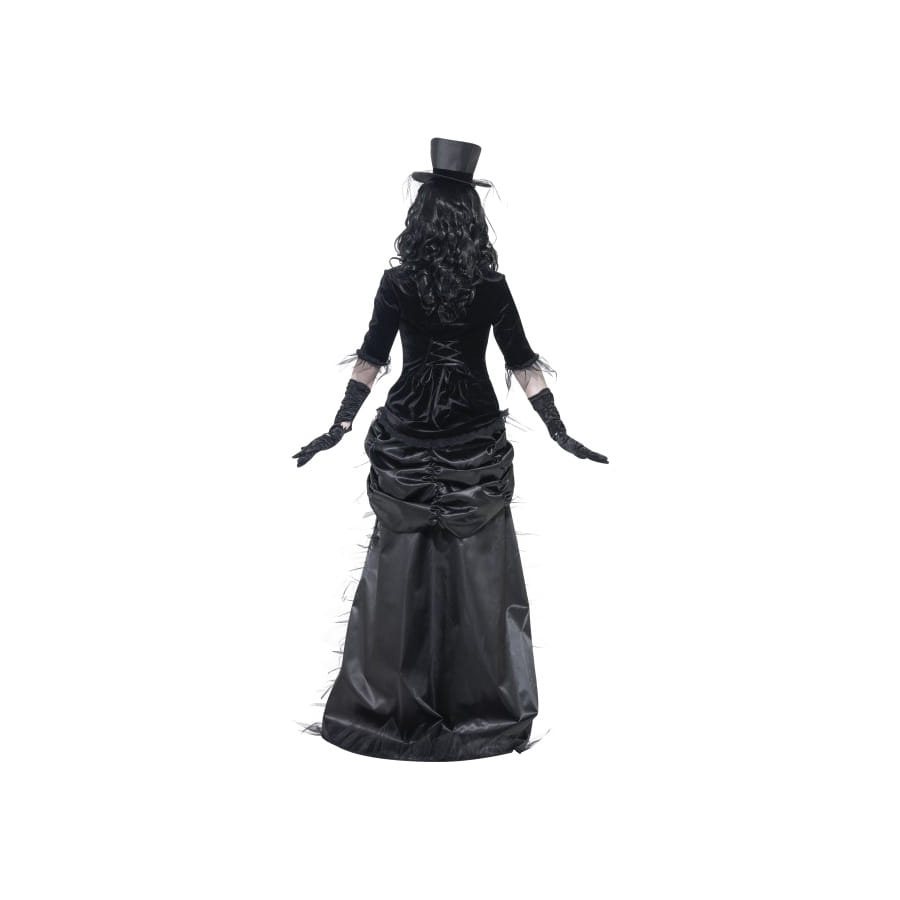 Ce déguisement de veuve noir fantôme vous pourrez le porter pour halloween ou encore une soirée sous le signe de l'horreur ou épouvante. Vous pourrez aussi le porter pour le carnaval. Il est composé d'un chapeau gris, d'un top noir et gris avec manche mi long, d'une jupe grise sur le devant et noir a l'arrière.