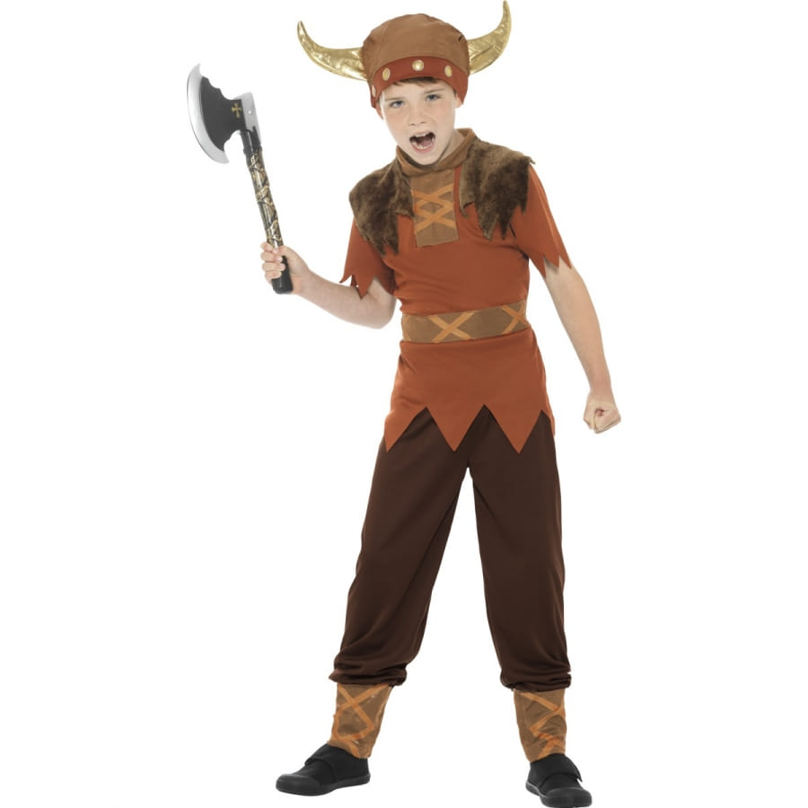 Déguisement de Viking, pour enfant, composé d'un top et d'un pantalon de couleur marron. Les deux sont disponibles en taille S, M ou L. Ils sont agrémentés de lacets et le top d'une ceinture. Cet ensemble fera de votre enfant un petit barbare très crédible.