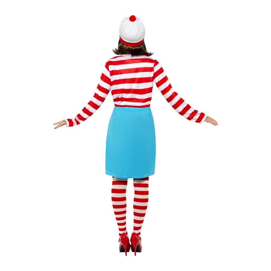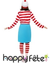 Un déguisement de Wally, qui est de taille M. Ce déguisement vous pourrez le porter pour une fête qui est basée sur le thème dessin animé. Ce déguisement de taille M est composé d'un top blanc et rouge, d'une jupe bleu, d'une paire de collant à rayure blanc et rouge, d'une paire de lunette et d'un chapeau blanc et bleu.