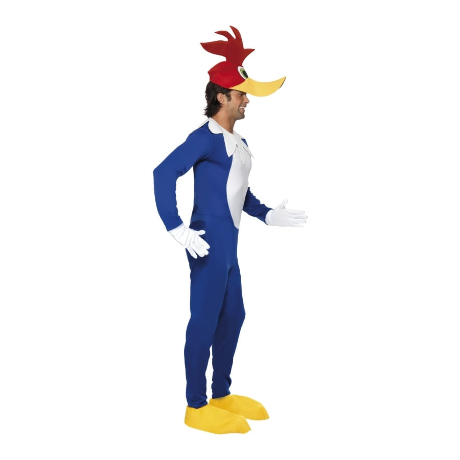 Déguisement de Woody Woodpecker sous licence, pour homme, composé d'une combinaison bleue et blanc, d'une coiffe en forme de tête de Woody et d'une paire de gants blancs. Incarnez-vous en pivert insolent pour une fête inspirée des dessins animés!
