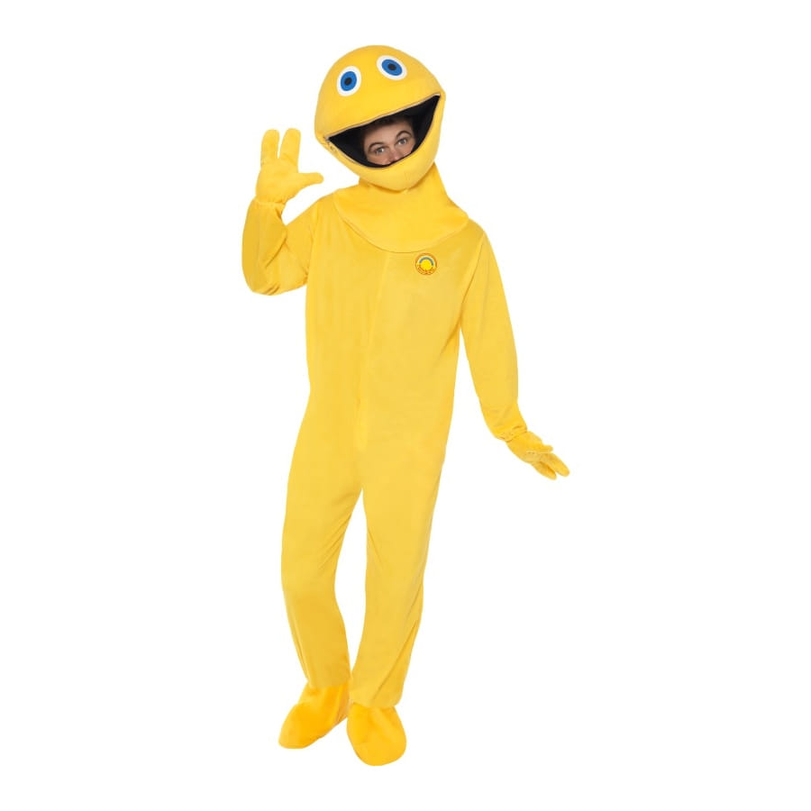 Déguisement de Zippy Rainbow de couleur jaune, pour homme, composé d'une combinaison, de gants et d'une tête Zippy. Ce déguisement humoristique sera parfait pour un enterrement de vie de garçon ou de jeune fille.