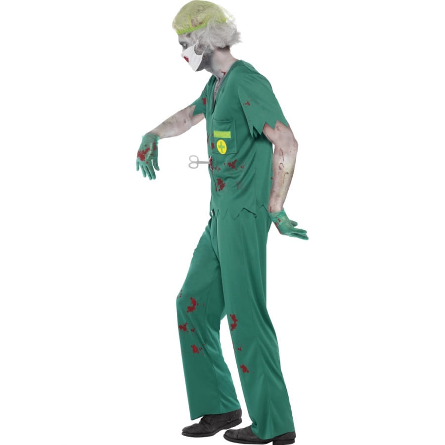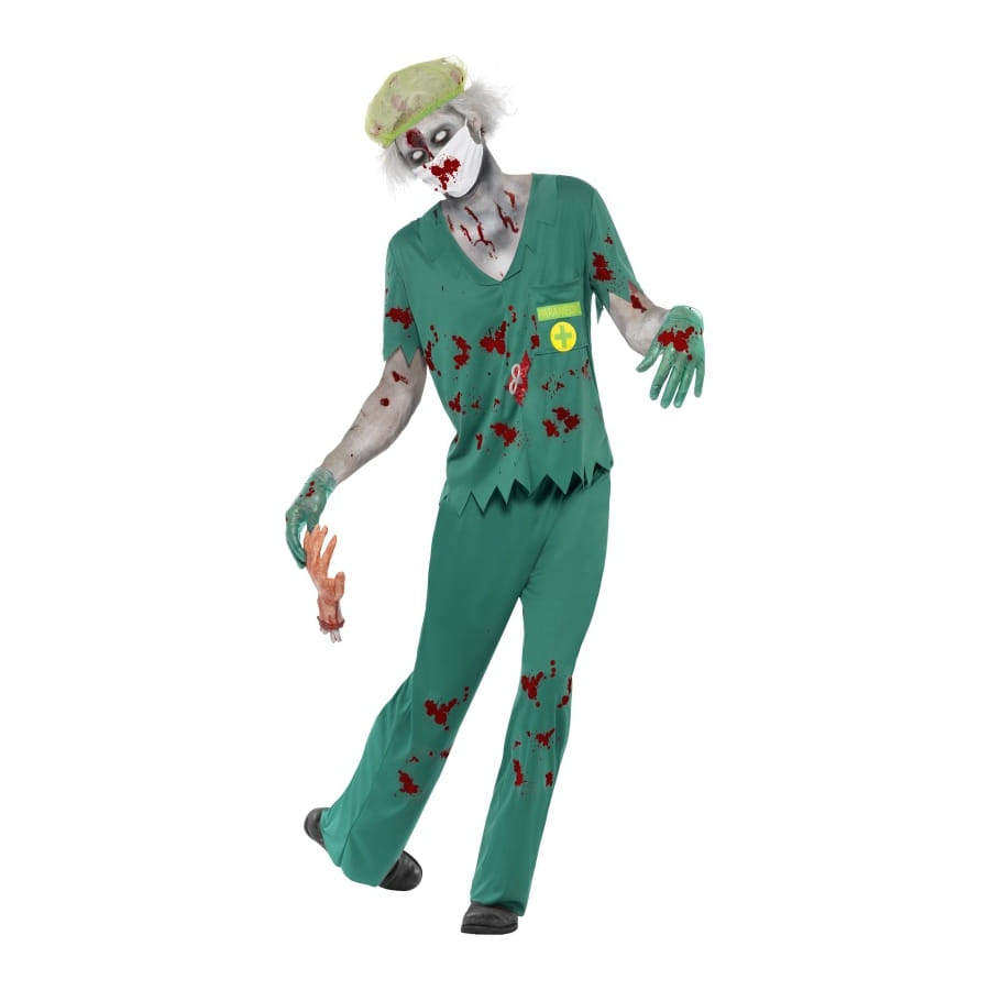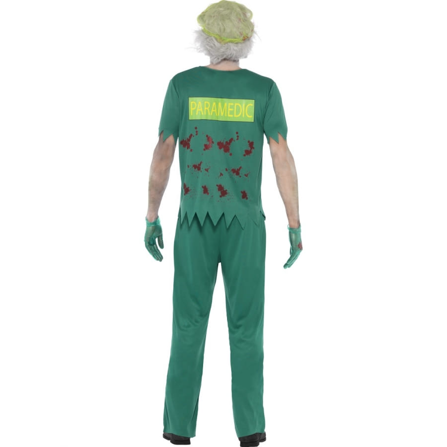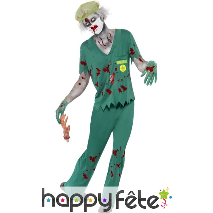 Un costume de zombie paramédical vous pouvez porter ce déguisement pour un thème comme Halloween, vous pouvez le porter aussi pour une fête sur le thème horreur. Ce déguisement est composé d'un filet pour cheveux, d'une paire de gants vert, d'un top vert avec du sang dessus et il est aussi composé d'un pantalon vert avec du sang dessus.