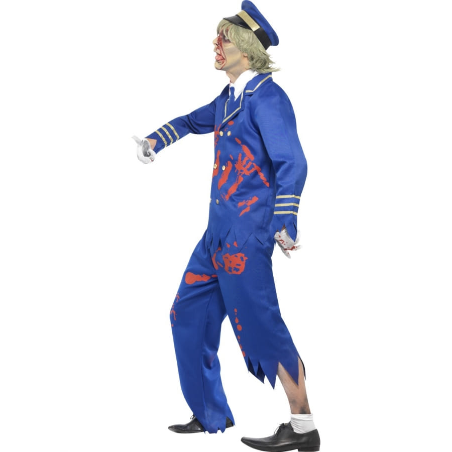 Ce déguisement de pilote va effrayer plus d'un pour Halloween ou pour toute autre soirée horreur. Ce déguisement est composé d'une veste de couleur bleu avec des bordures dorés et du sang dessus, il est aussi composé d'une chemise, d'un pantalon qui a un effet déchiré et d'un chapeau bleu et doré