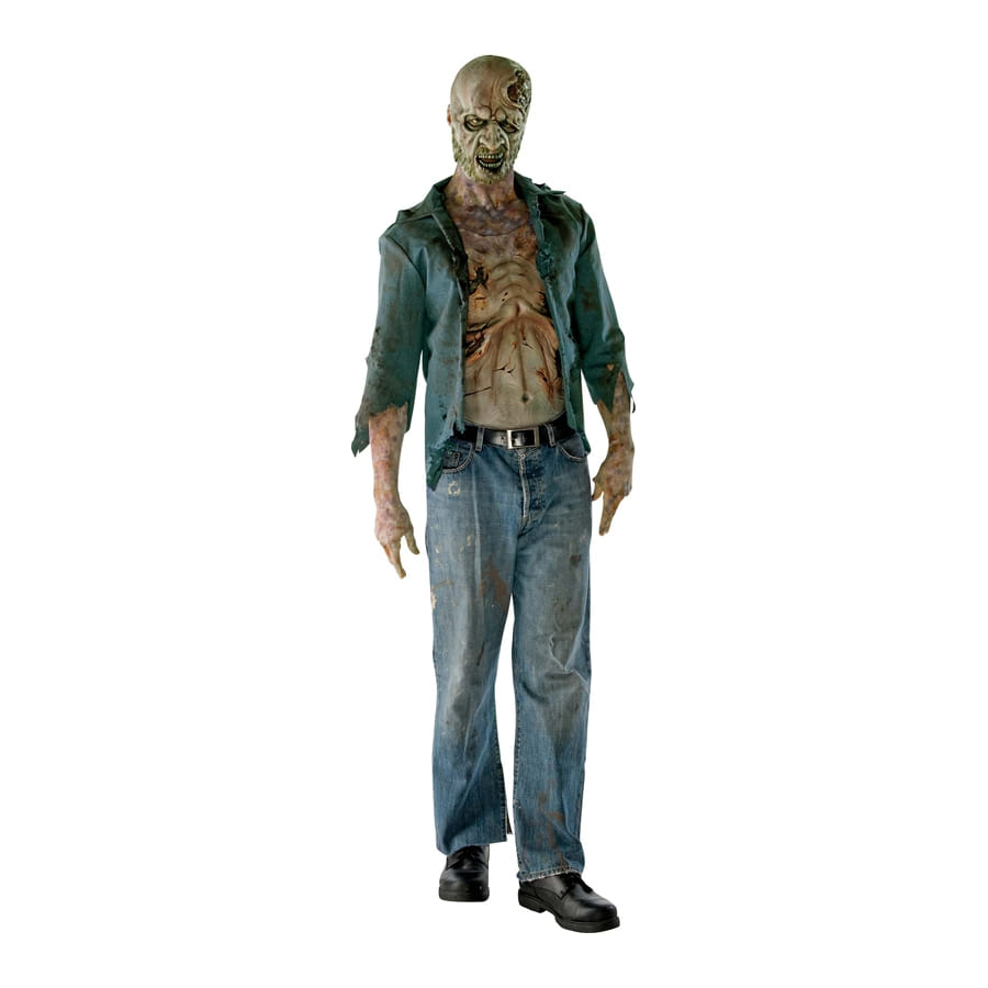 Semez la terreur en ville avec ce superbe ensemble de "The Walking Dead" sous licence. Composé d'un masque de zombie, d'un haut en forme de torse décomposé et d'une chemise en guenilles, cet ensemble fera de vous un zombie plus vrai que nature. Le masque dissimulera parfaitement votre visage, vous permettant ainsi de faire peur même à vos proches.