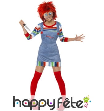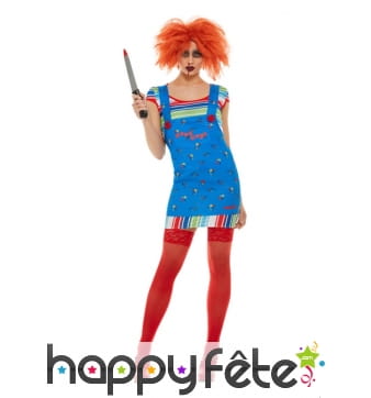 Arborrez fièrement, à l'occasion d'une soirée d'Halloween entre adultes, un déguisement de Chucky ou de sa fiancée. Ces deux personnages diaboliques et sanglants forment partie de la culture de films d'horreur cultes et en tant que vrai(e) fan, vous ne pourrez passer à côté de cette occasion. Pour mieux satisfaire notre large clientèle, nous mettons à votre disposition la possibilité de choisir le même déguisement en plusieurs tailles différentes. Votre nuit d'Halloween s'annoncera diabolique et ensanglantée! Vous ne risquerez pas de l'oublier de si tôt.