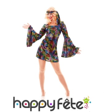 Catégorie de déguisement disco. Quand on parle de paillettes, cela rappelle forcément les années disco. Vous vous émerveillerez certainement devant notre superbe gamme de déguisement multicolores et flashy. Vous aurez le choix entre des ensembles composés de plusieurs accessoires, comme les déguisements de danseur et de danseuse disco ou de starlette, ou des tenues simples telle qu'une combinaison moulante ou une simple robe.