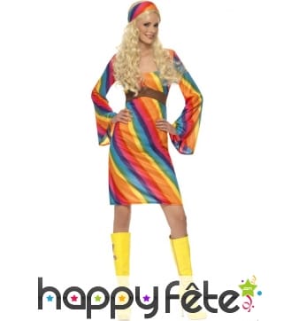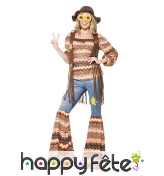 Mesdames et Messieurs, il est temps de retrouver les valeurs de paix et d'amour, ne serait-ce qu'à travers des déguisements. Ainsi, choisissez l'un de ces déguisements hippie grande taille que nous vous proposons dans cette section le temps d'une fête, surtout si l'évènement est à thème rétro. Les motifs fleuris et les imprimés colorés sont préconisés dans cette section pour un style hippie parfait. Quant aux styles de ces costumes, la plupart sont amples, que ce soit les robes ou les pantalons, côté femme. Les déguisements pour hommes, quant à eux, sont pour la plupart assez cintrés. Vous pourrez mettre ces costumes lors de fêtes à thème disco et paillettes, à thème années 70 et 80 ou à thème humour.