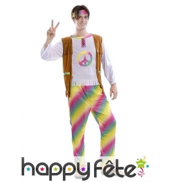 Nous sommes retournés quelques années en arrière et nous sommes inspirés des années 60 pour pouvoir concevoir toute une section dédiée au style hippie, plus précisément aux déguisements hippie homme. Nous savons que vous êtes curieux de ressentir l'ouverture d'esprit avec laquelle ce style a été créé. Le style est simple avec une chemise à large col et un pantalon pate d'éléphant, ou bien un T-Shirt et un pantalon léger, ou une combinaison sans manche avec une chemise et bien d'autres encore mais avec un seul mot d'ordre : la couleur. Tous les déguisements de cette section sont tous aussi colorés les uns que les autres pour un style rétro et hippie parfait. Avec nos costumes, vous pourrez incarner un rocker psychédélique, un danseur groove, un disco dancer rose, ou même un hippie zombie. Que la paix soit avec vous !