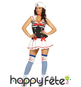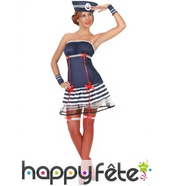 Si vous souhaitez vous déguiser en marin ou que votre fête est exclusivement basée sur ce thème, c'est ici que vous trouverez le déguisement marin idéal. Comme le veut la tradition, vous pourrez choisir parmi une grande quantité de déguisements de marin avec la couleur bleue comme base. Parmi ceux-là, vous trouverez des tenues classiques, sexy ou de Pin-Ups rétro. Pour plus de variété et de choix, vous aurez l'occasion de choisir des tenues de couleurs différentes telles que celles de personnages de la Navy, de couleur blanche, d'officier de couleur noire ou de personnages de BD. De plus, nous avons inclus des tenues de marins zombies ou fantômes pour Halloween.