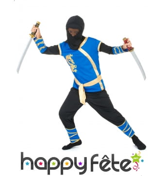 Oui, vous avez bien lu, vous aimez ça, nous aimons vous rendre heureux ! Un ninja est un guerrier espion pouvant réaliser des exploits physiques en combat, également un grand expert en acrobatie. Le déguisement ninja est généralement assimilée à un uniforme noir complété par une cagoule masquant son visage. Suite aux divers rôles au cinéma ainsi que dans les dessins animés, la tenue typique du ninja a évolué. Vous trouverez dans cette partie diverses options de déguisements à adopter pour vivre les aventures fantastiques d'un ninja. Voyez par exemple le kit de déguisement sous licence Tortue Ninja pour enfant, très original, avec lequel votre petit garnement pourra incarner le rôle des 4 tortues grâce aux 4 loups de couleurs différentes offerts avec l'ensemble. Pour nos grands rêveurs, vous allez dénicher des costumes de ninja pour adultes, tous différents en couleur, en forme et en découpe. Un costume de Samouraï est même disponible pour les amateurs ! Et avec tout ceci, dénichez-vous une paire de saï ou un sabre de samouraï. N'ayez crainte, cher guerrier, cette section vous fournira tout ce dont vous avez besoin.
